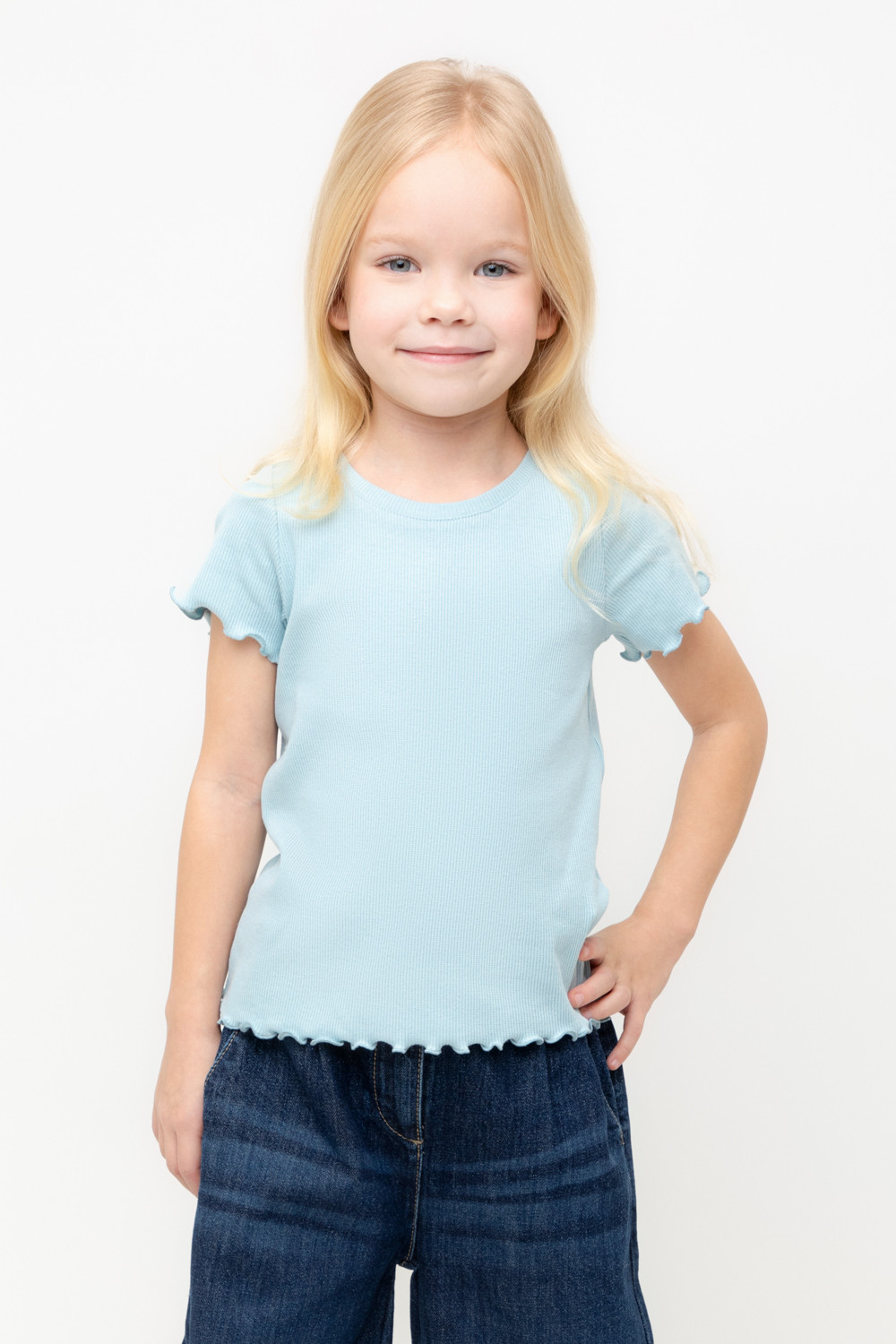Футболка для девочки из эластичного трикотажа в рубчик.  Изделие сохраняет цвет и форму после многократных стирок.