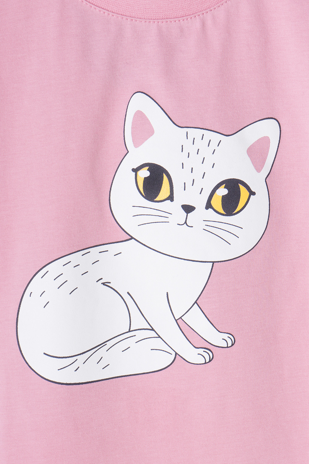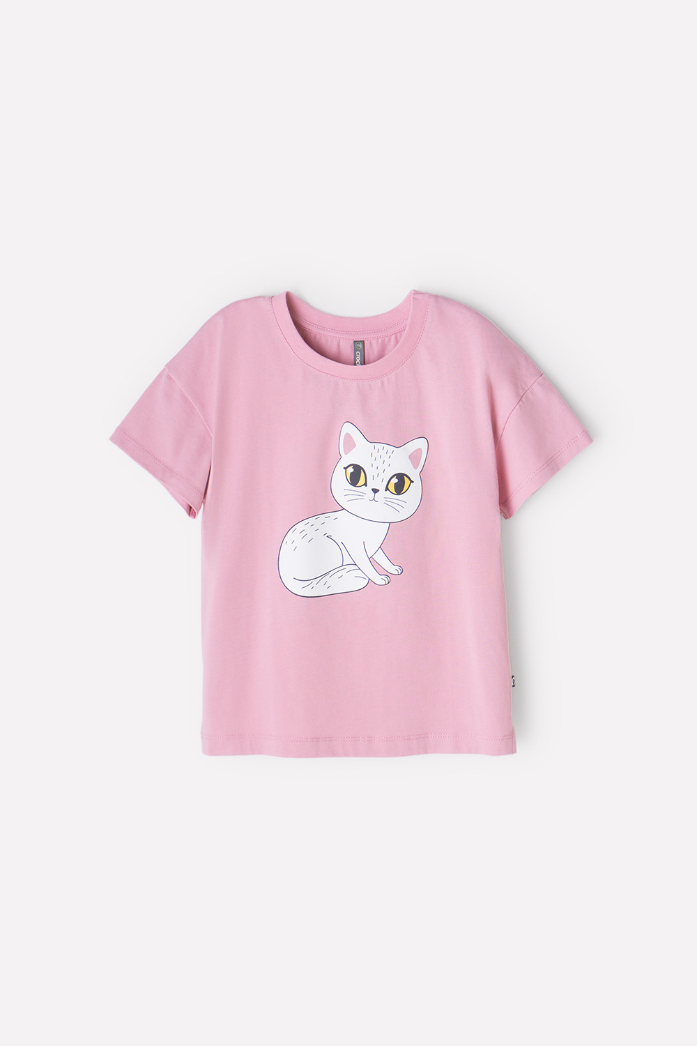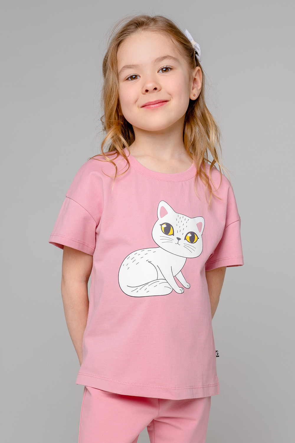 Футболка для девочки из гладкого трикотажа, произведённого из высококачественного натурального хлопка. Оригинальный принт выполнен из стойких текстильных гипоаллергенных красителей. Для удобства в размерах 92 и 98 имеется застежка на кнопки на спинке. Оригинальный принт выполнен из стойких текстильных гипоаллергенных красителей. Изделие сохраняет цвет и форму после многократных стирок.