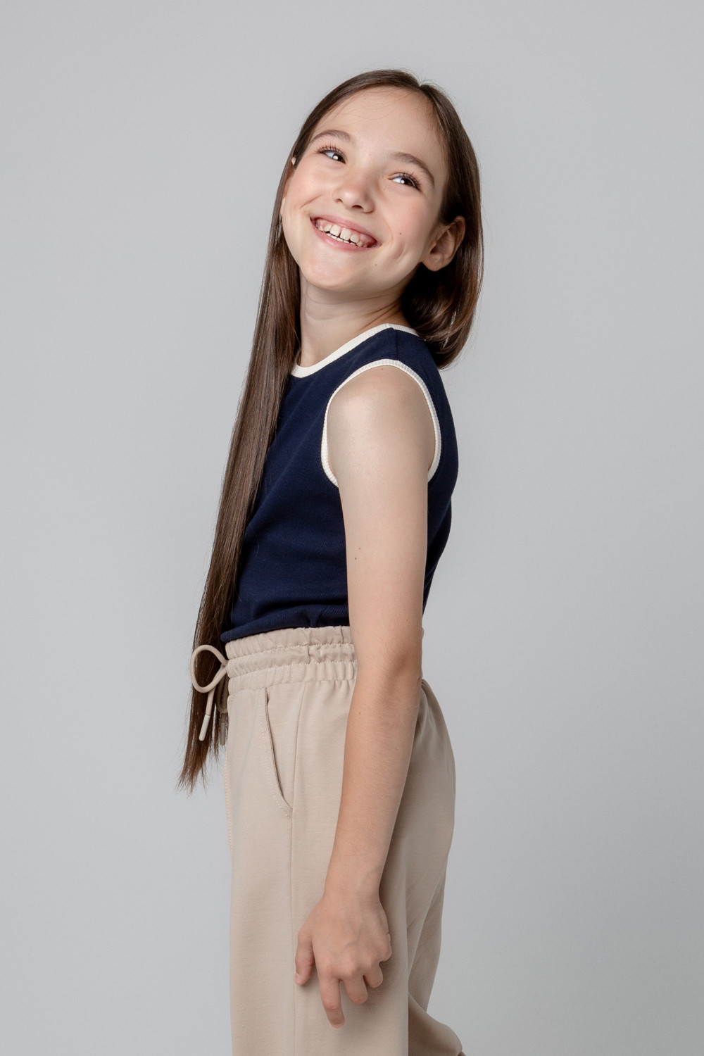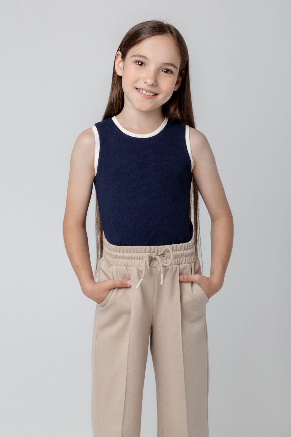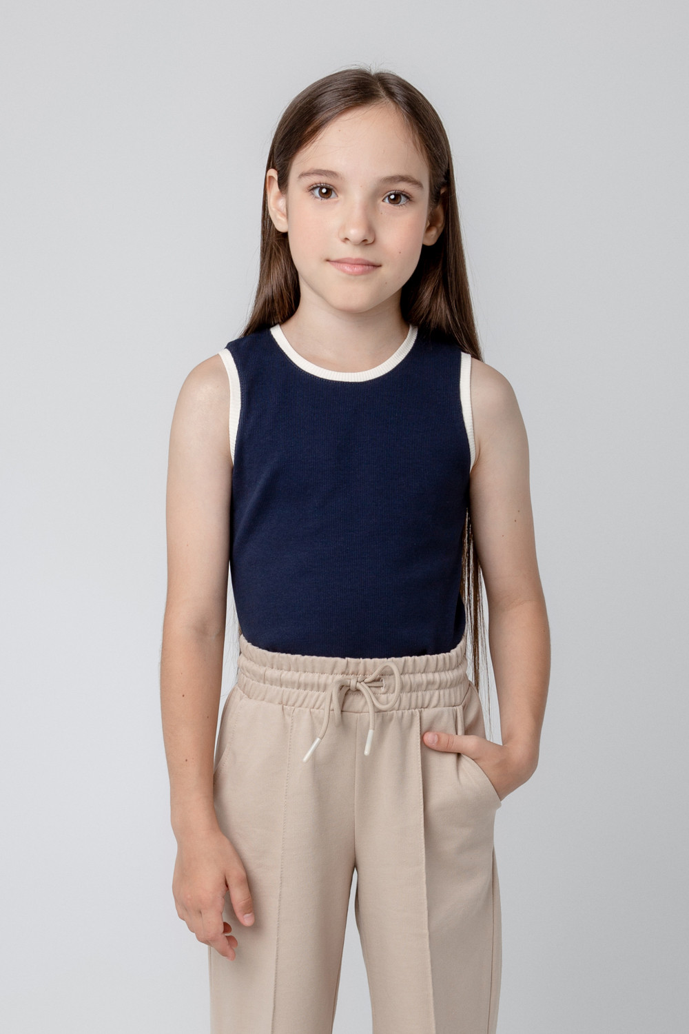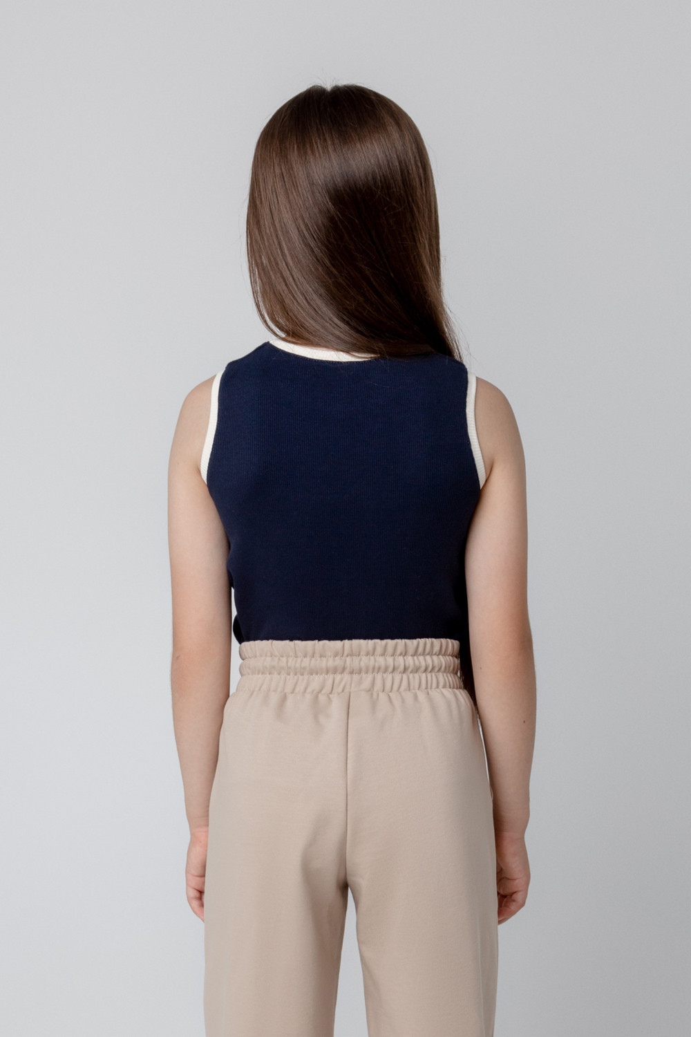 Трикотажная  майка для девочки из эластичного полотна в рубчик.