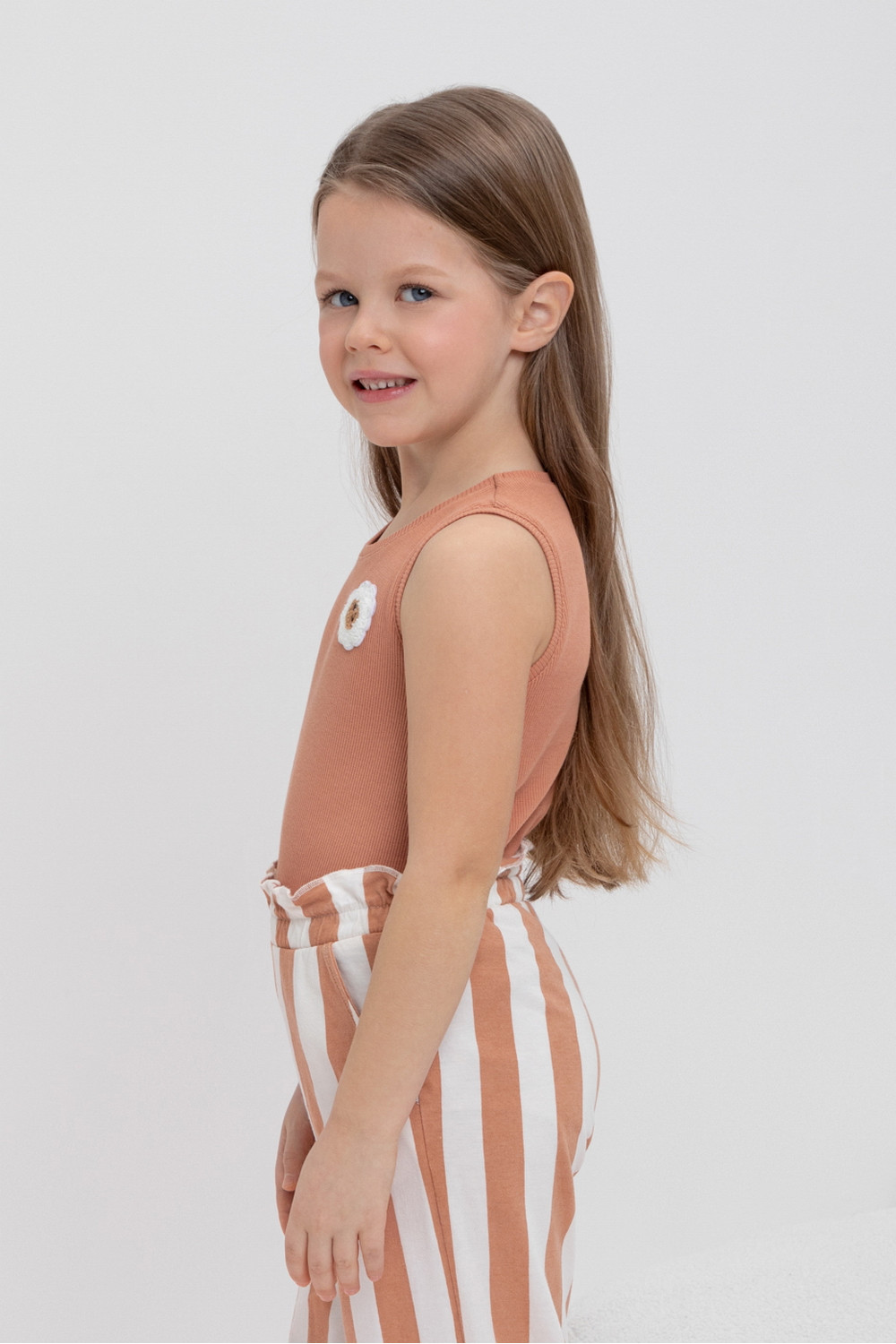 Трикотажная майка для девочки из эластичного полотна в рубчик.