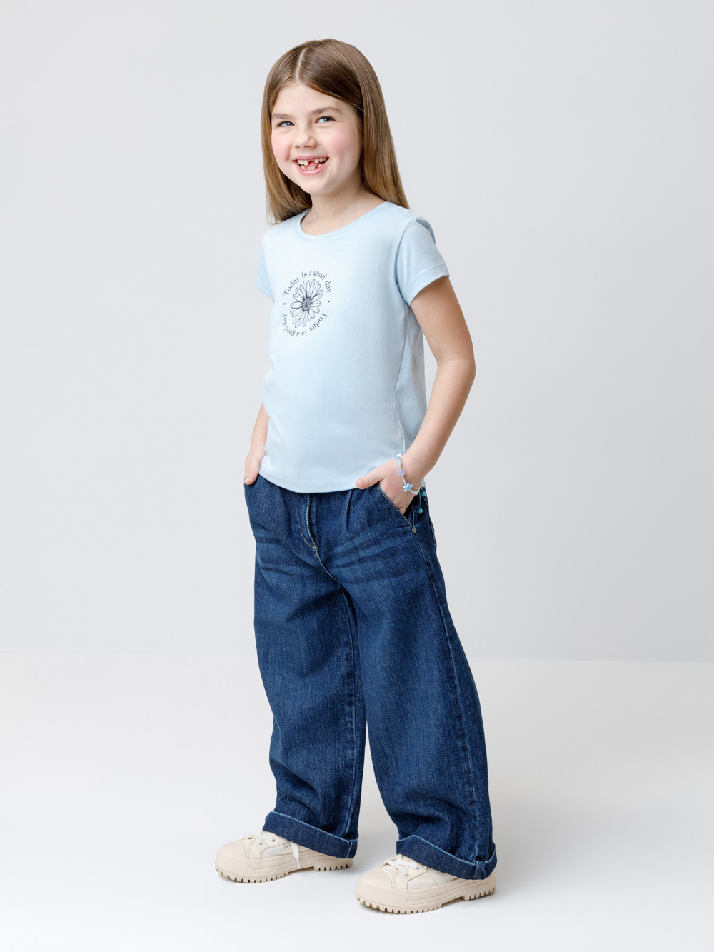 Футболка для девочки из высококачественного трикотажного полотна супрем. Оригинальный принт выполнен из стойких текстильных красителей. Изделие сохраняет цвет и форму после многократных стирок.