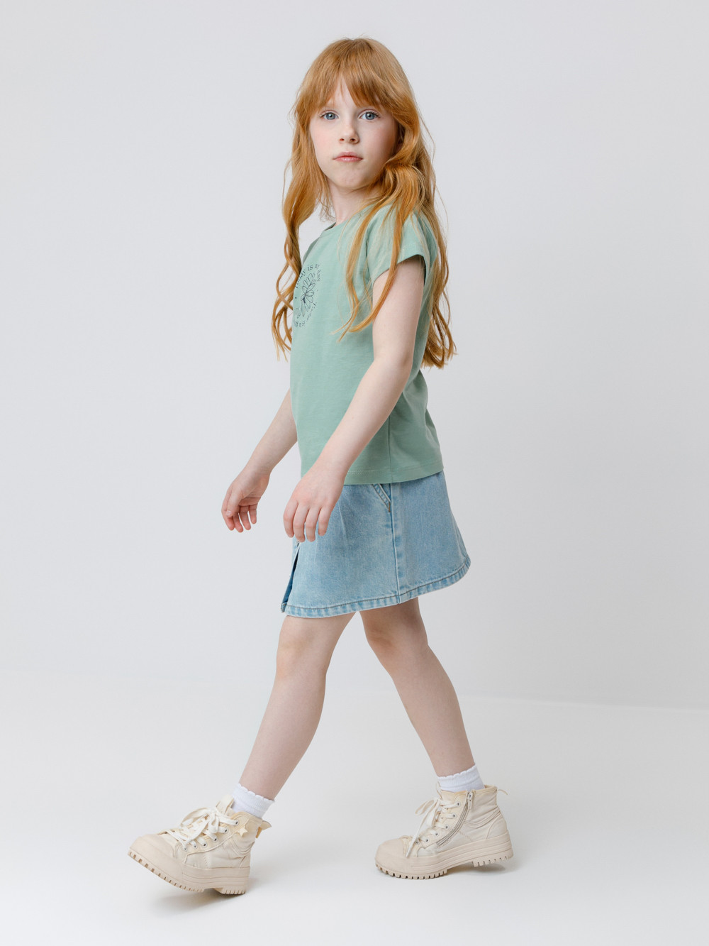 Футболка для девочки из высококачественного трикотажного полотна супрем. Оригинальный принт выполнен из стойких текстильных красителей. Изделие сохраняет цвет и форму после многократных стирок.