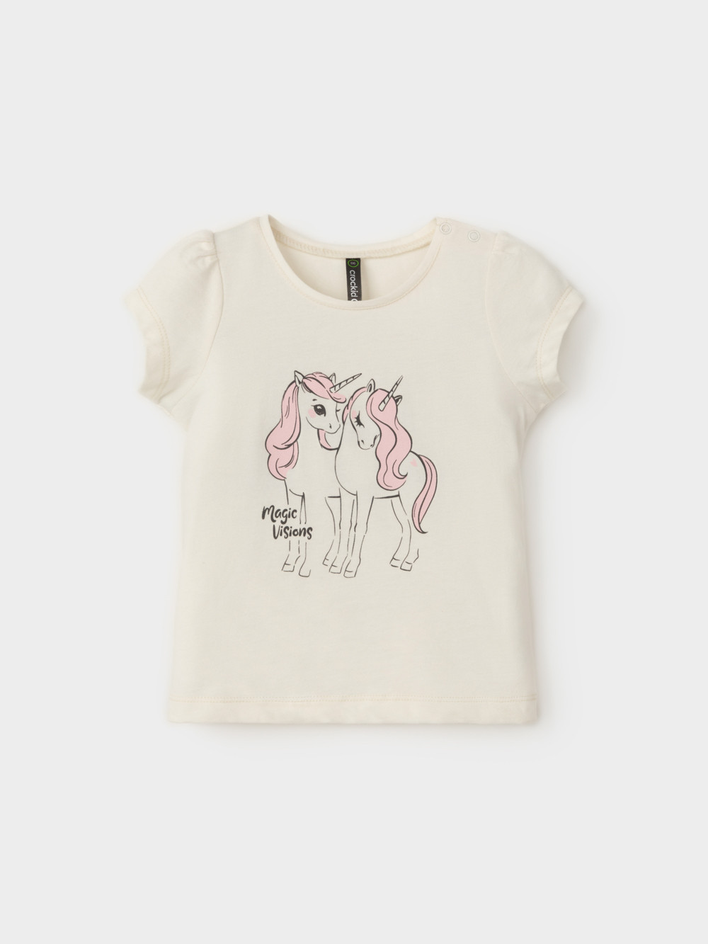 Футболка для девочки из высококачественного трикотажного полотна. Оригинальный принт выполнен из стойких текстильных гипоаллергенных красителей. Изделие сохраняет цвет и форму после многократных стирок. Все трикотажные полотна производятся в соответствии с нормами швейцарского сертификата ЭкоТекс.