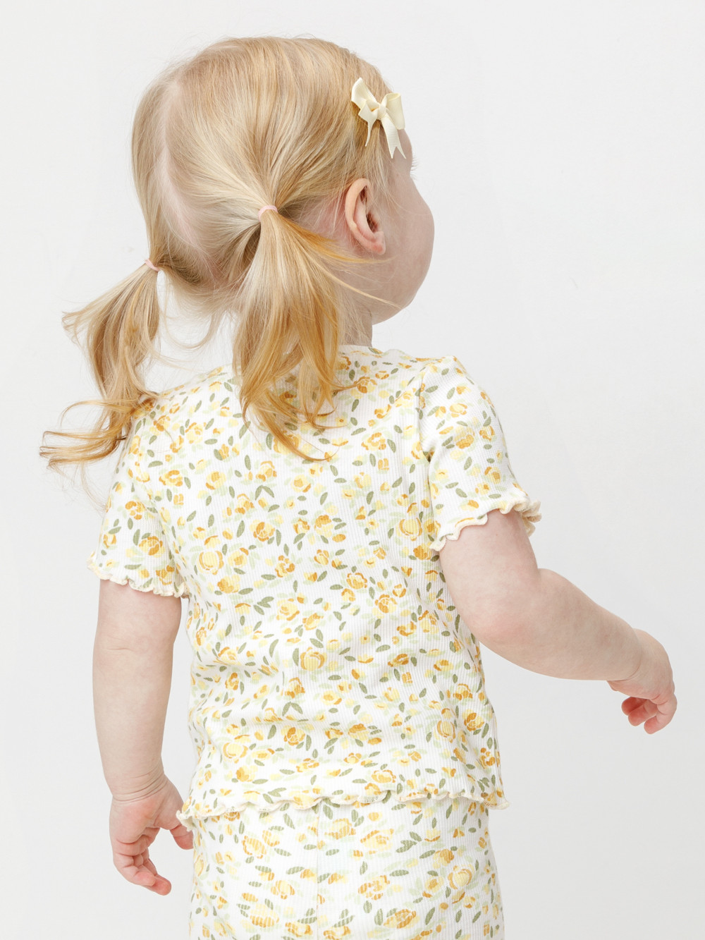 Футболка для девочки из эластичного трикотажного полотна в рубчик. Изделие сохраняет цвет и форму после многократных стирок. Все трикотажные полотна производятся в соответствии с нормами швейцарского сертификата ЭкоТекс.