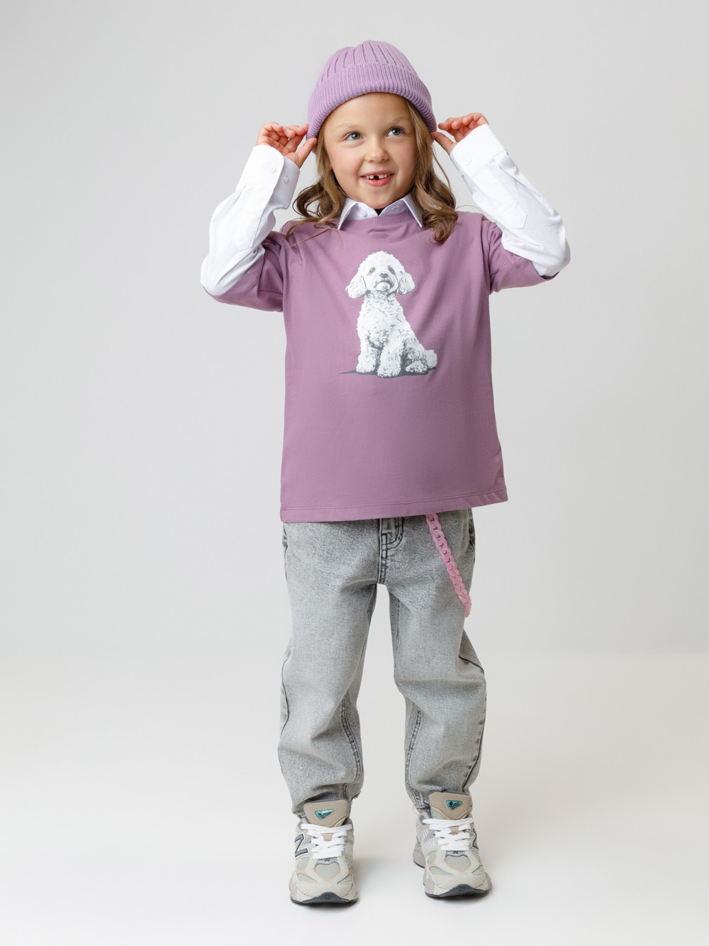 Футболка для девочки из гладкого трикотажа, произведённого из высококачественного натурального хлопка. В 92 и 98 размерах на спине для удобства при одевании застёгивается на кнопки. Оригинальный принт выполнен из стойких текстильных гипоаллергенных красителей. Изделие сохраняет цвет и форму после многократных стирок. Все трикотажные полотна производятся в соответствии с нормами швейцарского сертификата ЭкоТекс.