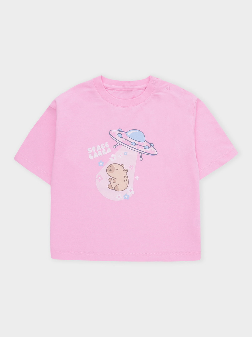 Футболка для девочки из высококачественного трикотажного полотна. Застёгивается на плече на кнопки. Оригинальный принт выполнен из стойких текстильных гипоаллергенных красителей. Изделие сохраняет цвет и форму после многократных стирок. Все трикотажные полотна производятся в соответствии с нормами швейцарского сертификата ЭкоТекс.