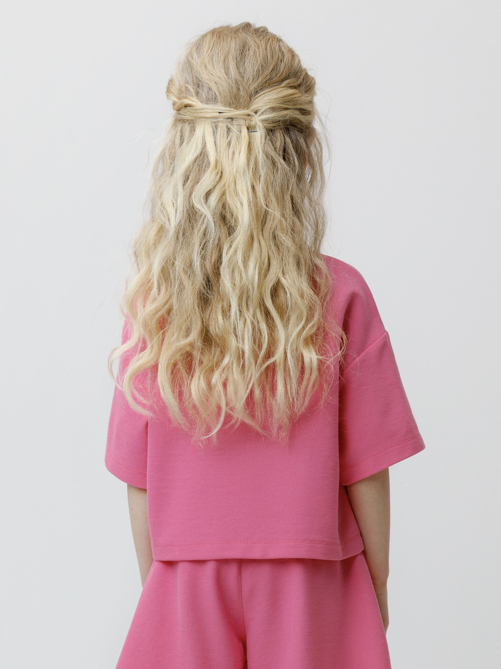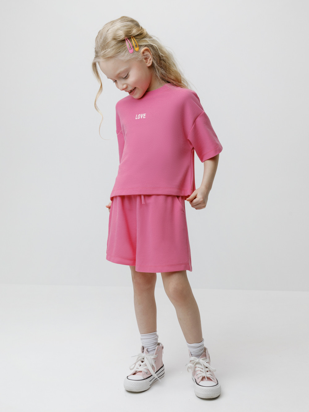 Футболка однотонная для девочки из высококачественного трикотажного полотна пике. Изделие сохраняет цвет и форму после многократных стирок. Все трикотажные полотна производятся в соответствии с нормами швейцарского сертификата ЭкоТекс.