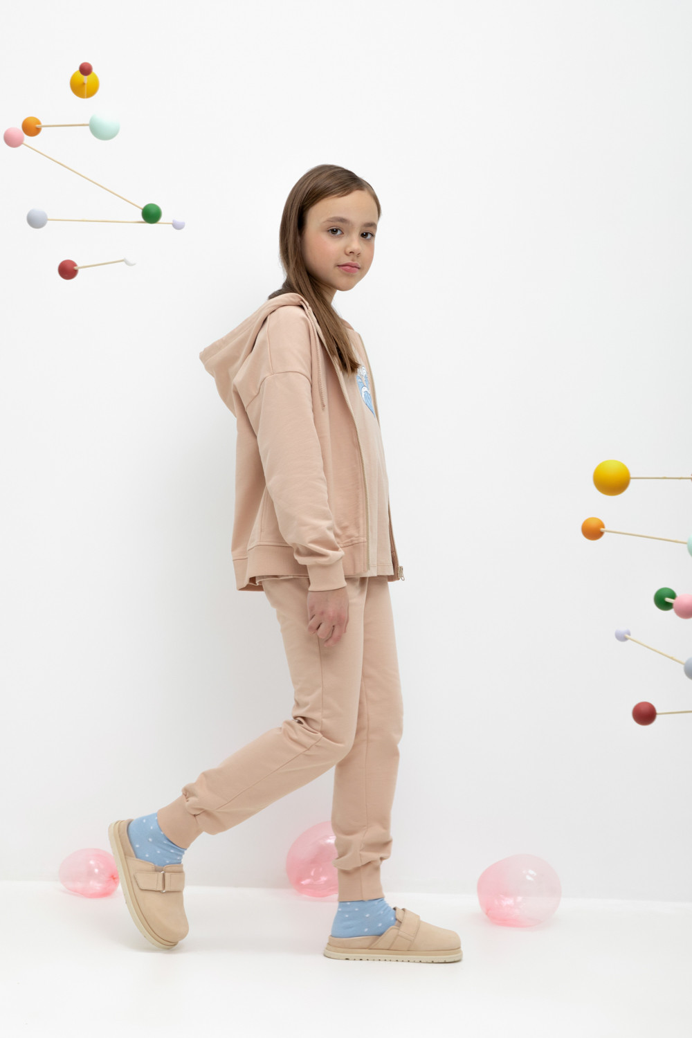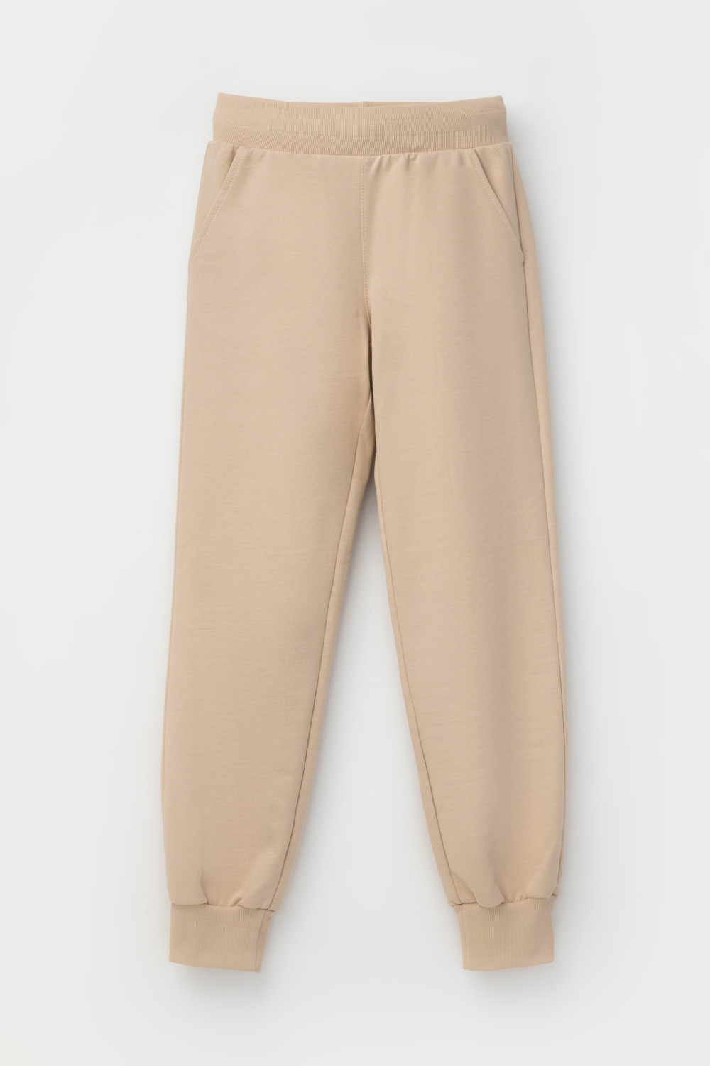 рикотажные брюки для девочки из петельчатого футера. Эластичный пояс на резинке , по бокам два удобных кармана, внизу эластичные манжеты.
