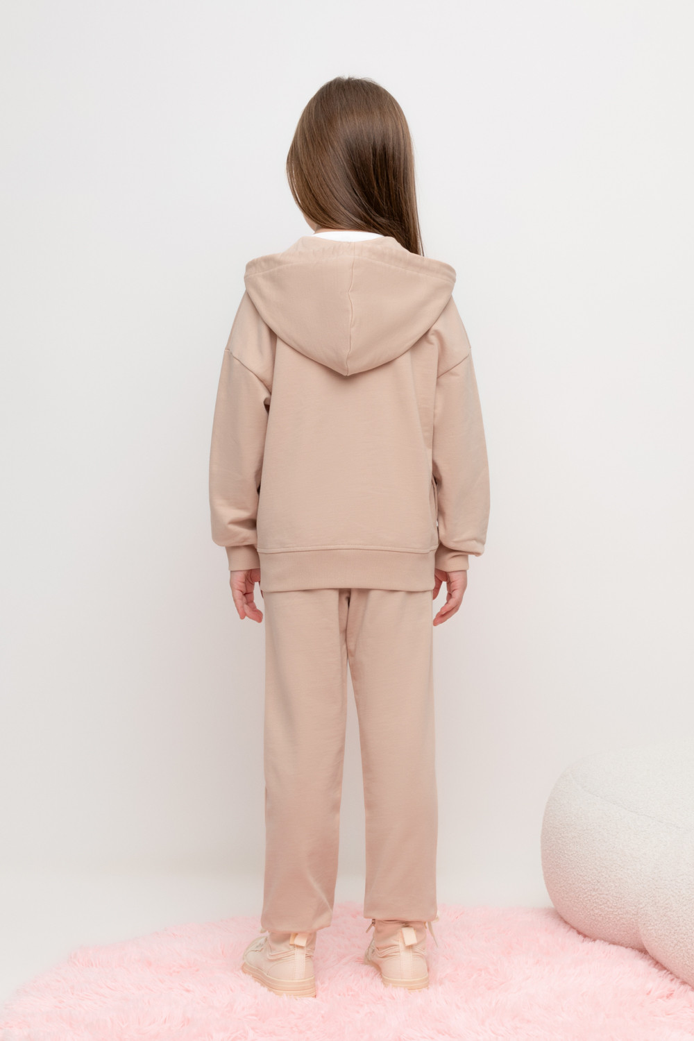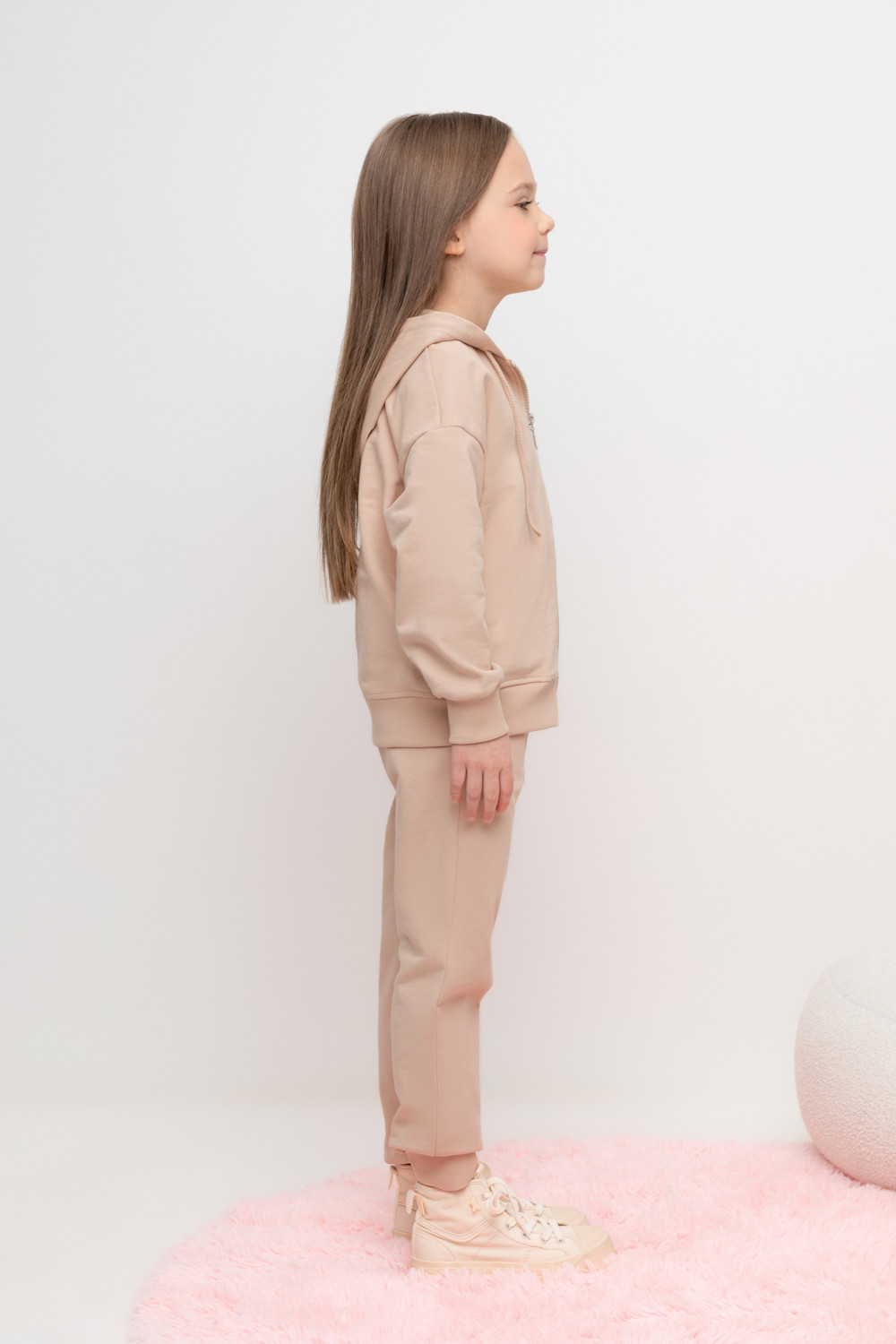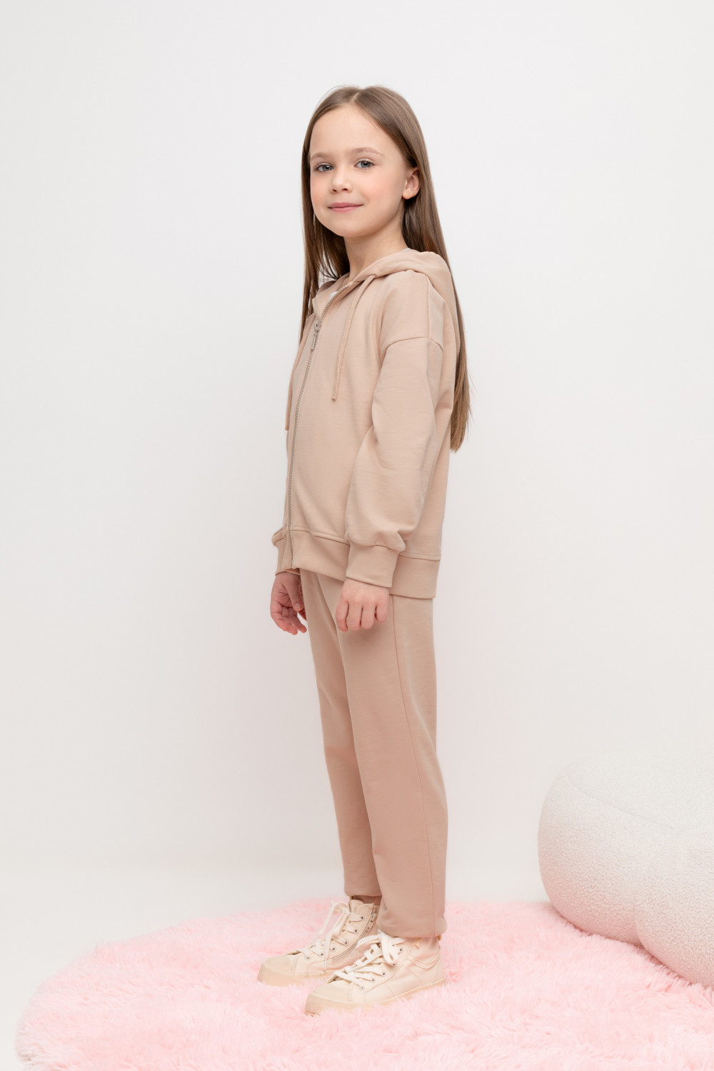 Трикотажные брюки для девочки из петельчатого футера. Эластичный пояс на резинке, по бокам два удобных кармана, внизу эластичные манжеты.