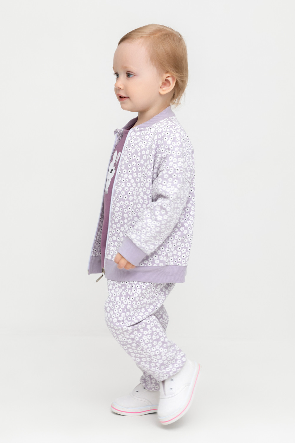 Трикотажные брюки для девочки из петельчатого футера. Эластичный пояс на резинке регулируется по ширине с помощью шнурка, внизу эластичные манжеты.
