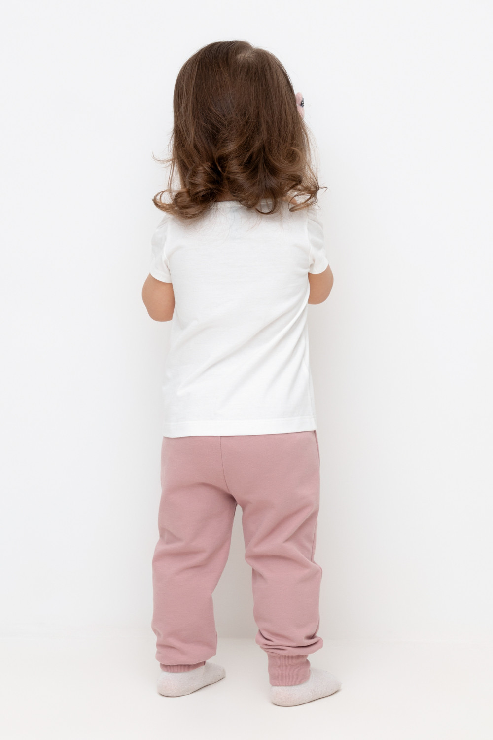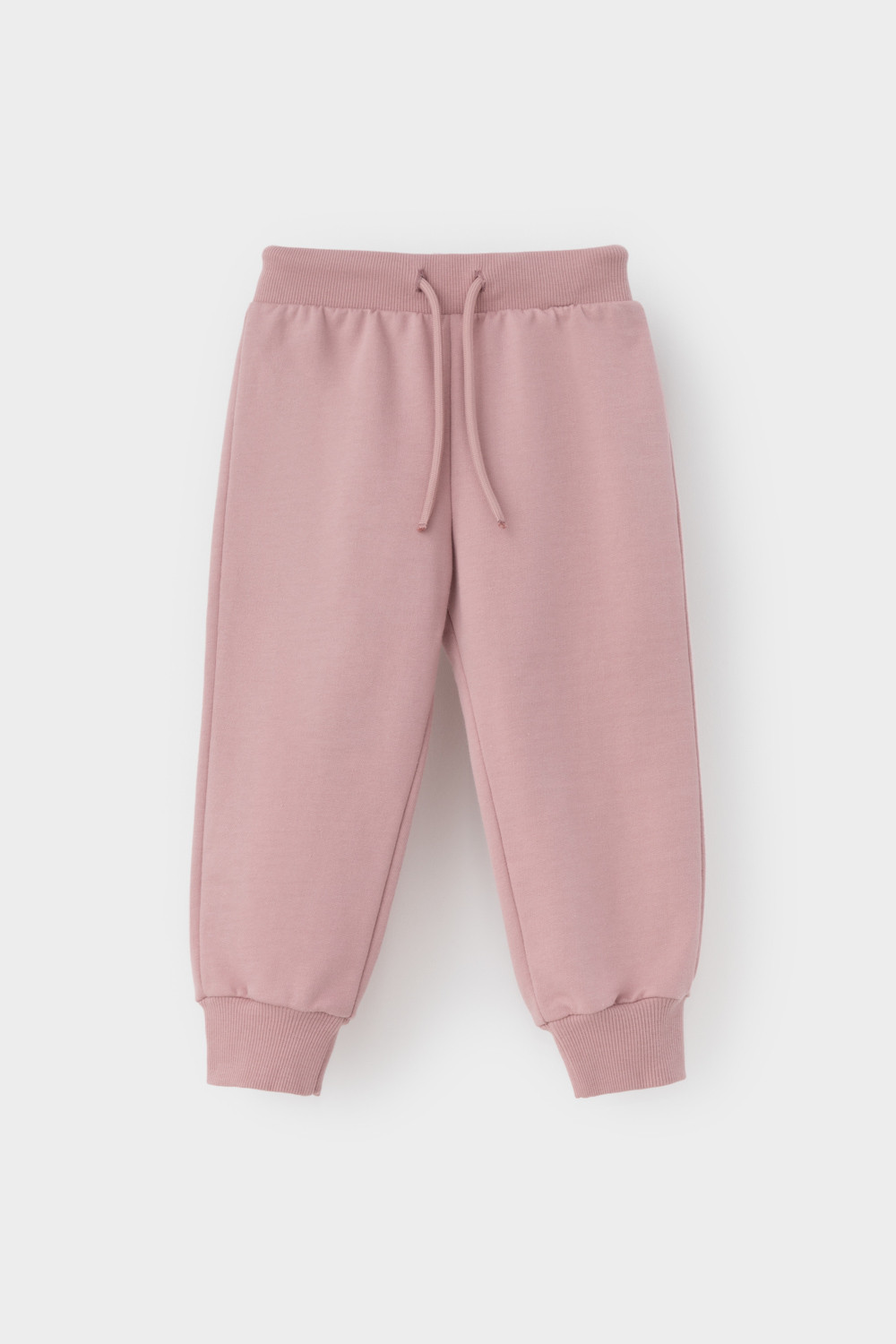 Трикотажные брюки для девочки из футера с начесом. Эластичный пояс на резинке регулируется по ширине с помощью шнурка, внизу эластичные манжеты.