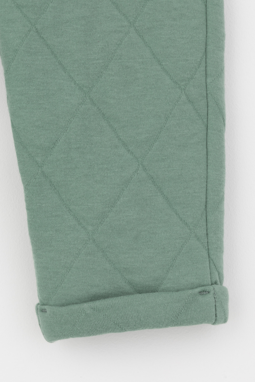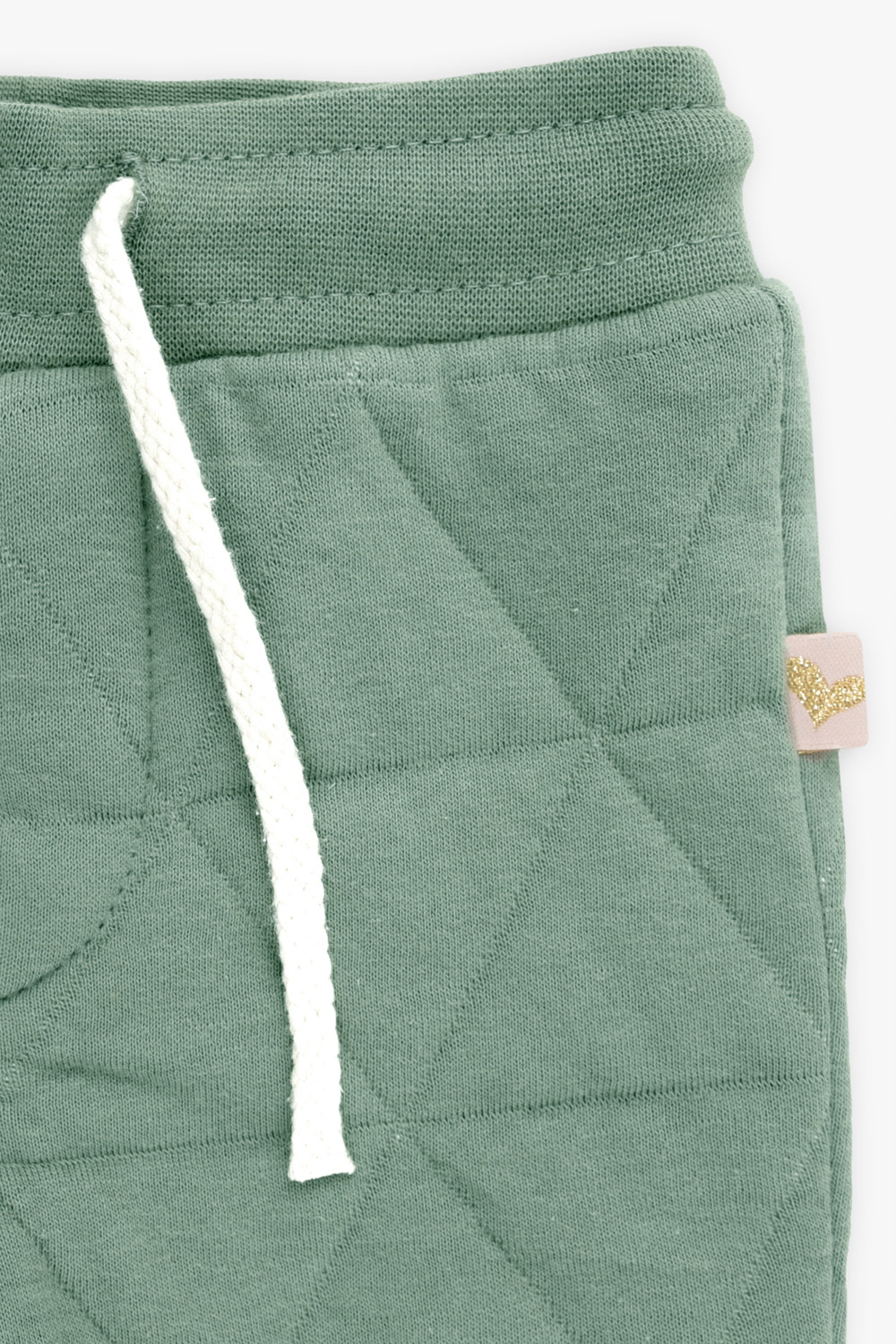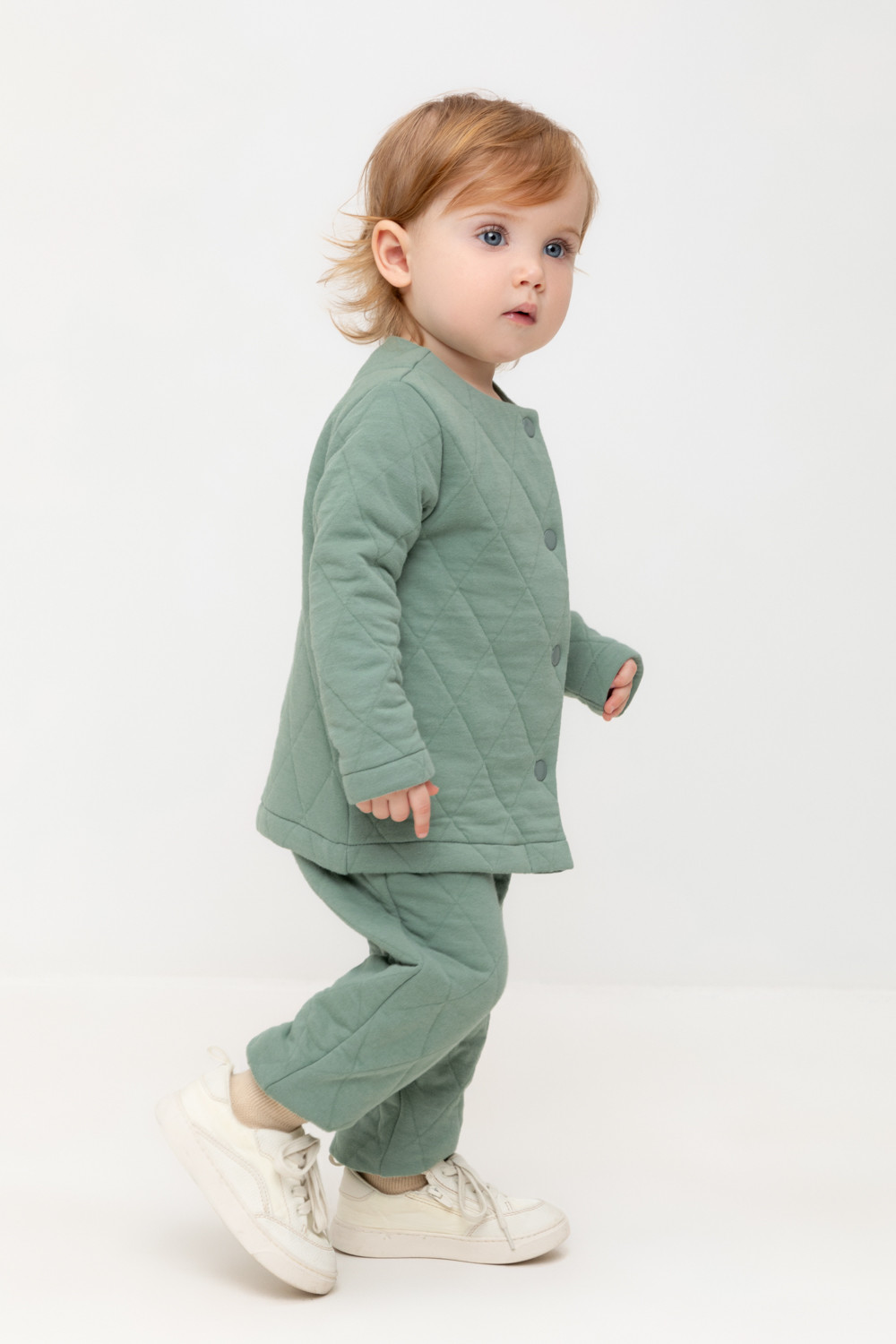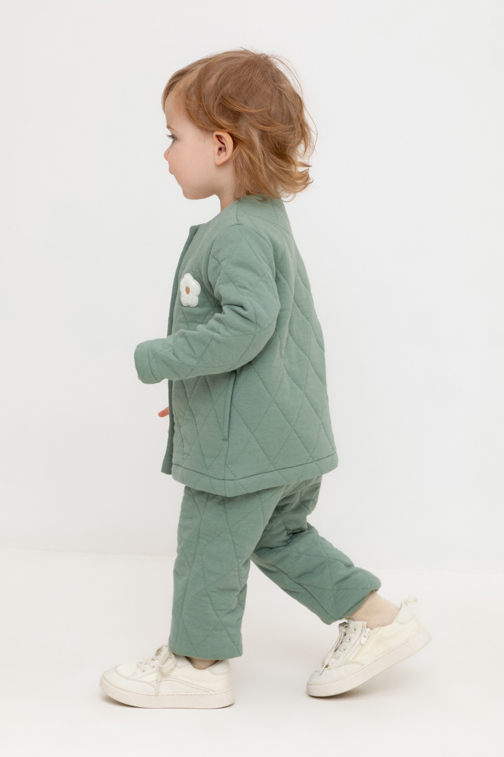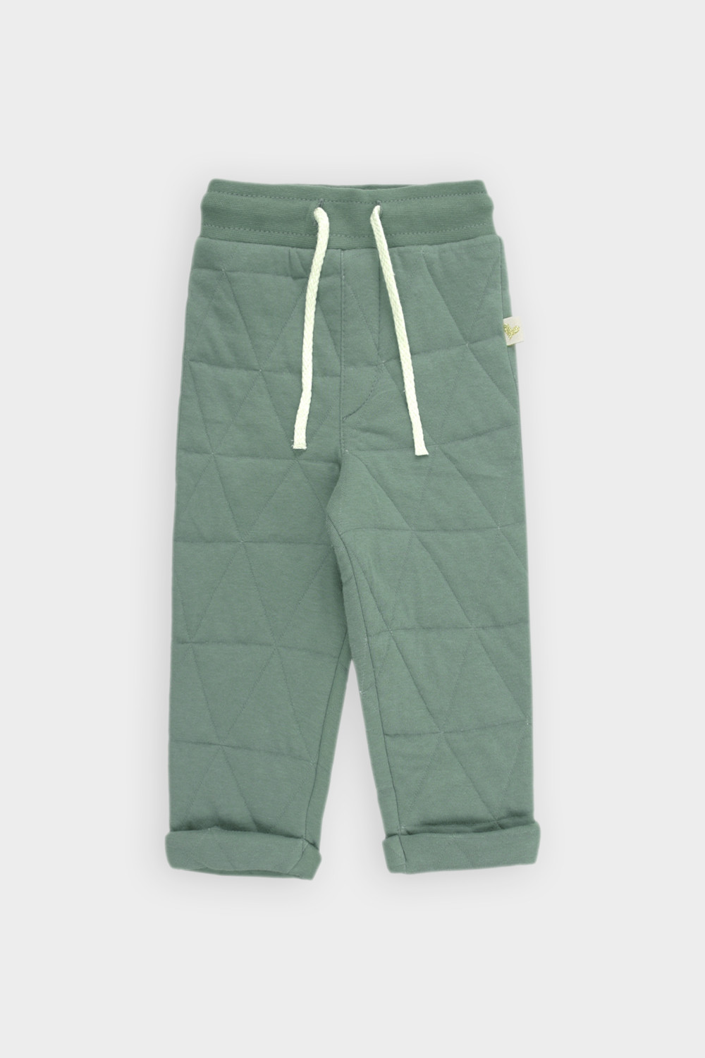 Трикотажные брюки для девочки из стеганого трикотажного полотна. Эластичный пояс на резинке регулируется по ширине с помощью шнурка, внизу манжеты на резинке.