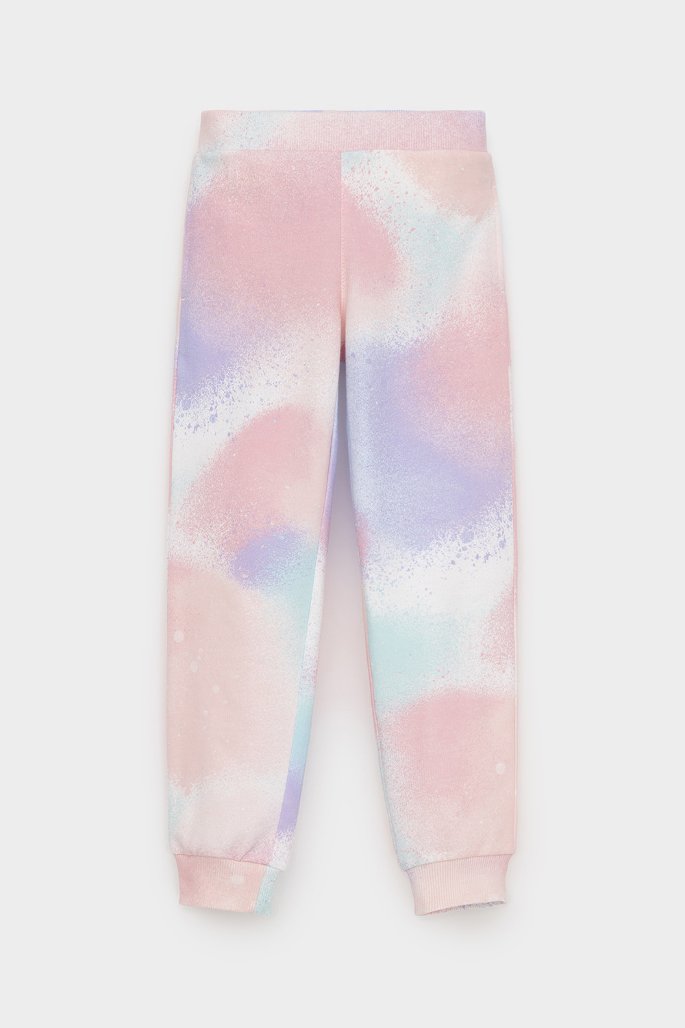 Трикотажные брюки для девочки из мягкого петельчатого футера. Эластичный пояс на резинке, по бокам два удобных кармана, внизу эластичные манжеты.