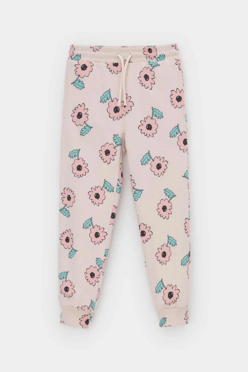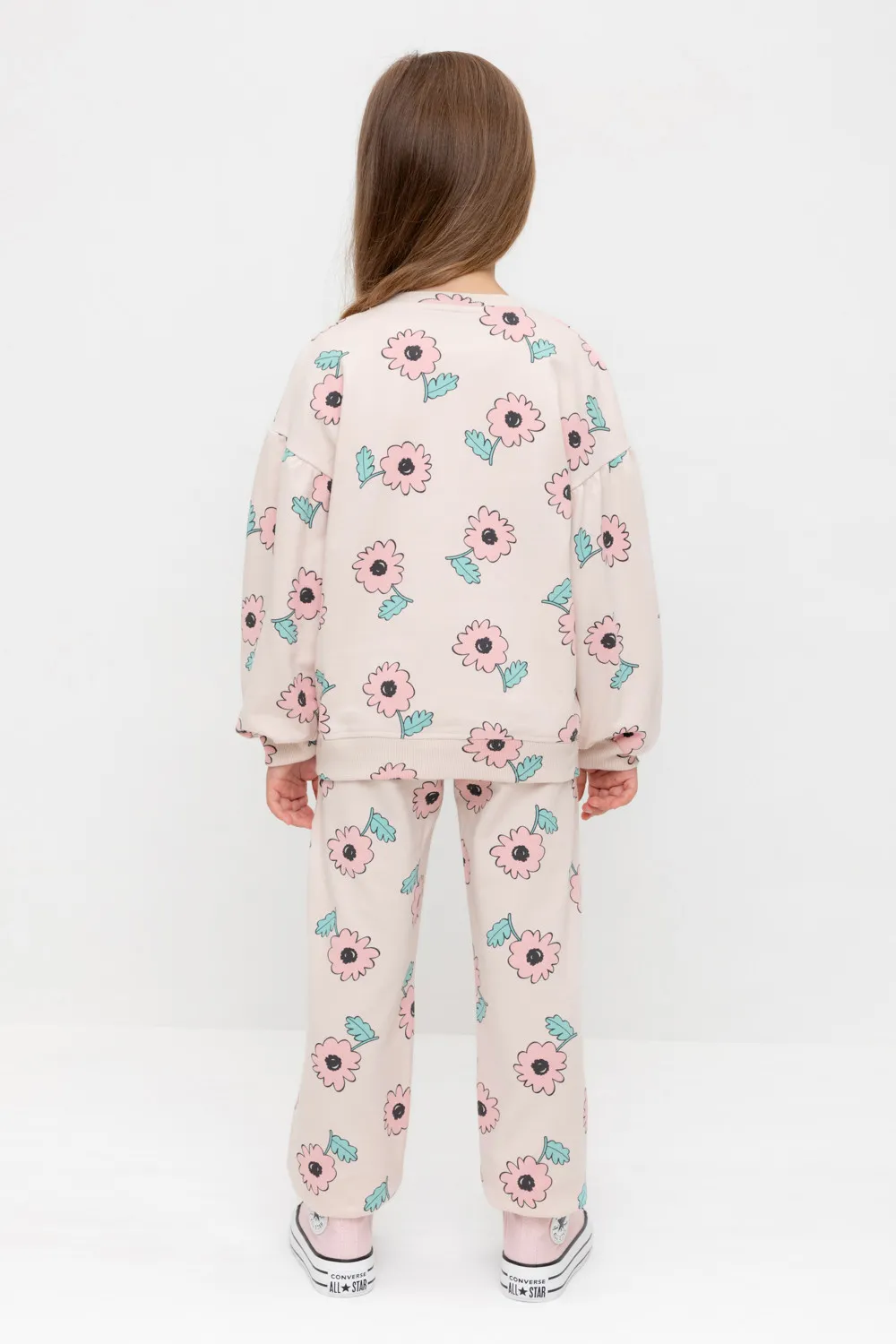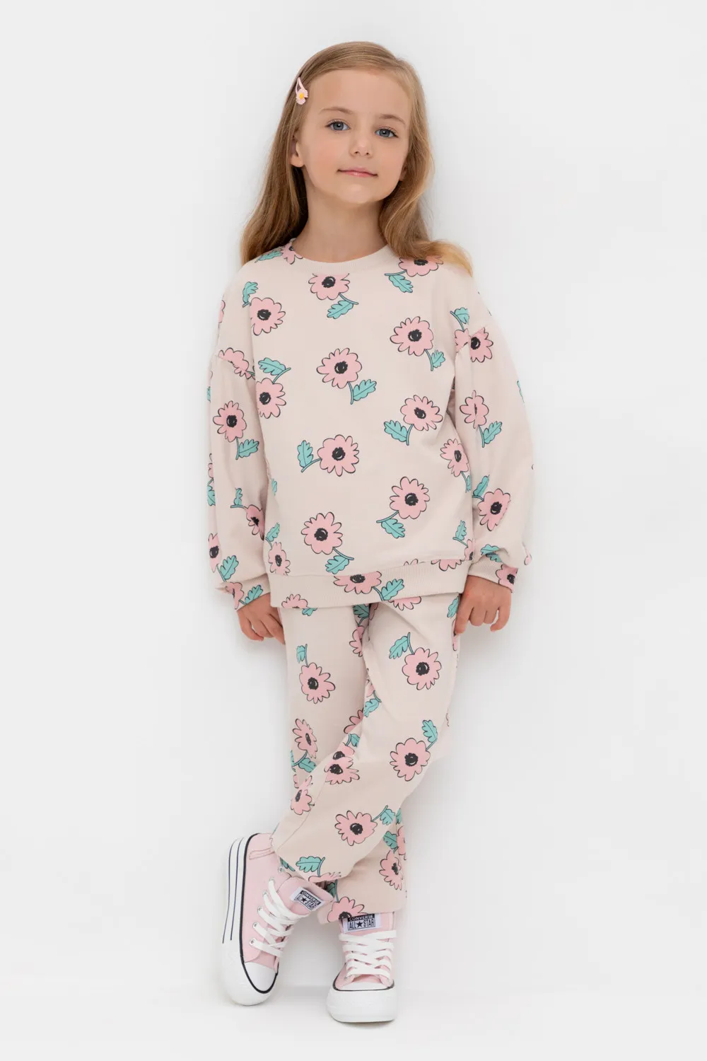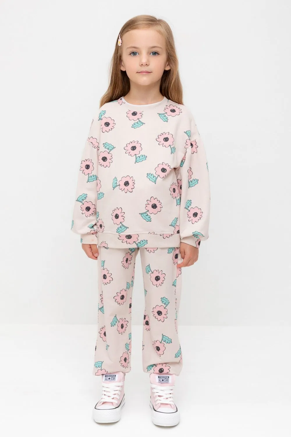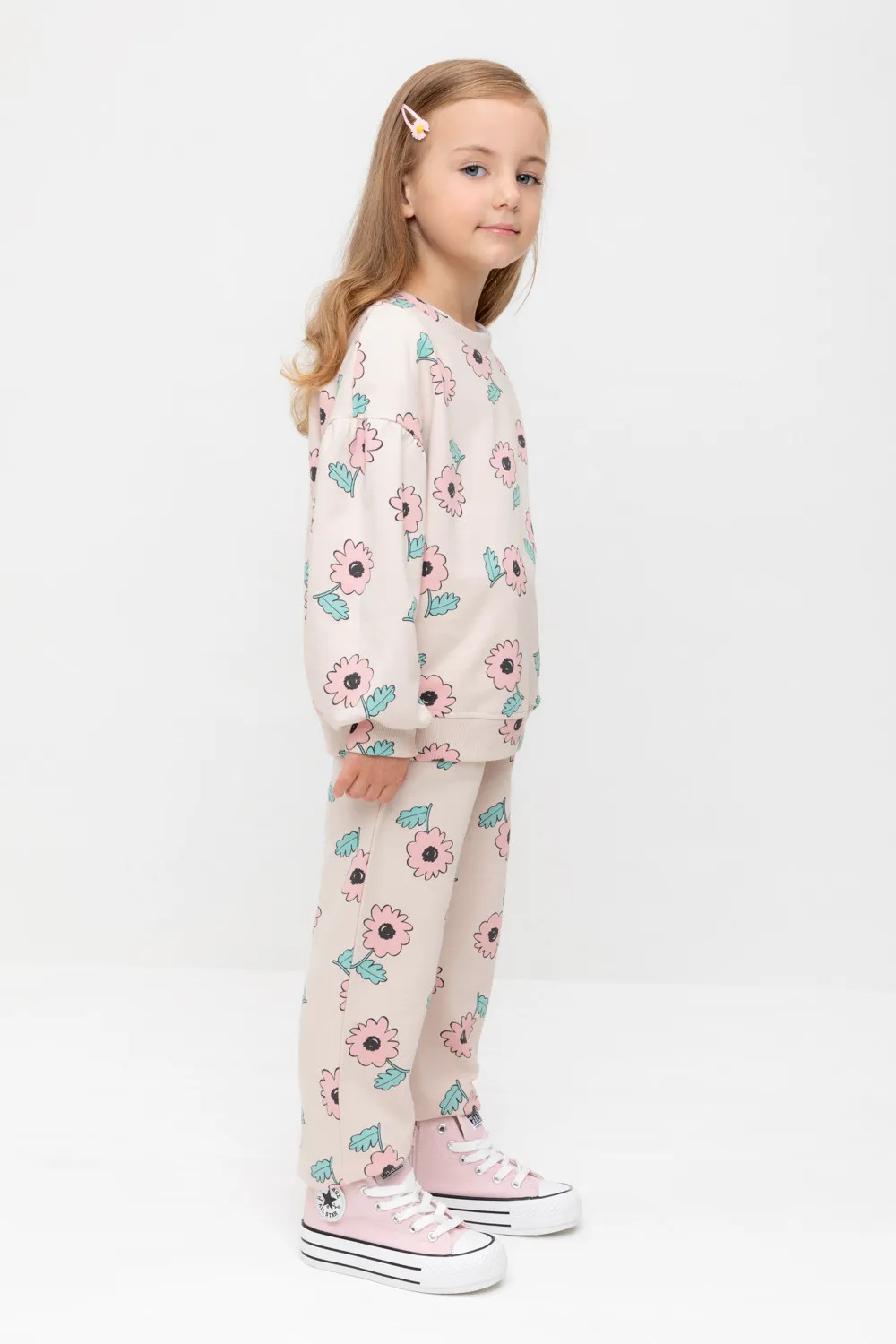 Трикотажные брюки для девочки из петельчатого футера. Эластичный пояс на резинке регулируется по ширине с помощью шнурка, по бокам два удобных кармана, внизу эластичные манжеты.