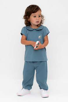Брюки для девочки из мягкого петельчатого трикотажа. Эластичный пояс на резинке регулируется по ширине с помощью шнурка. Внизу эластичные манжеты.