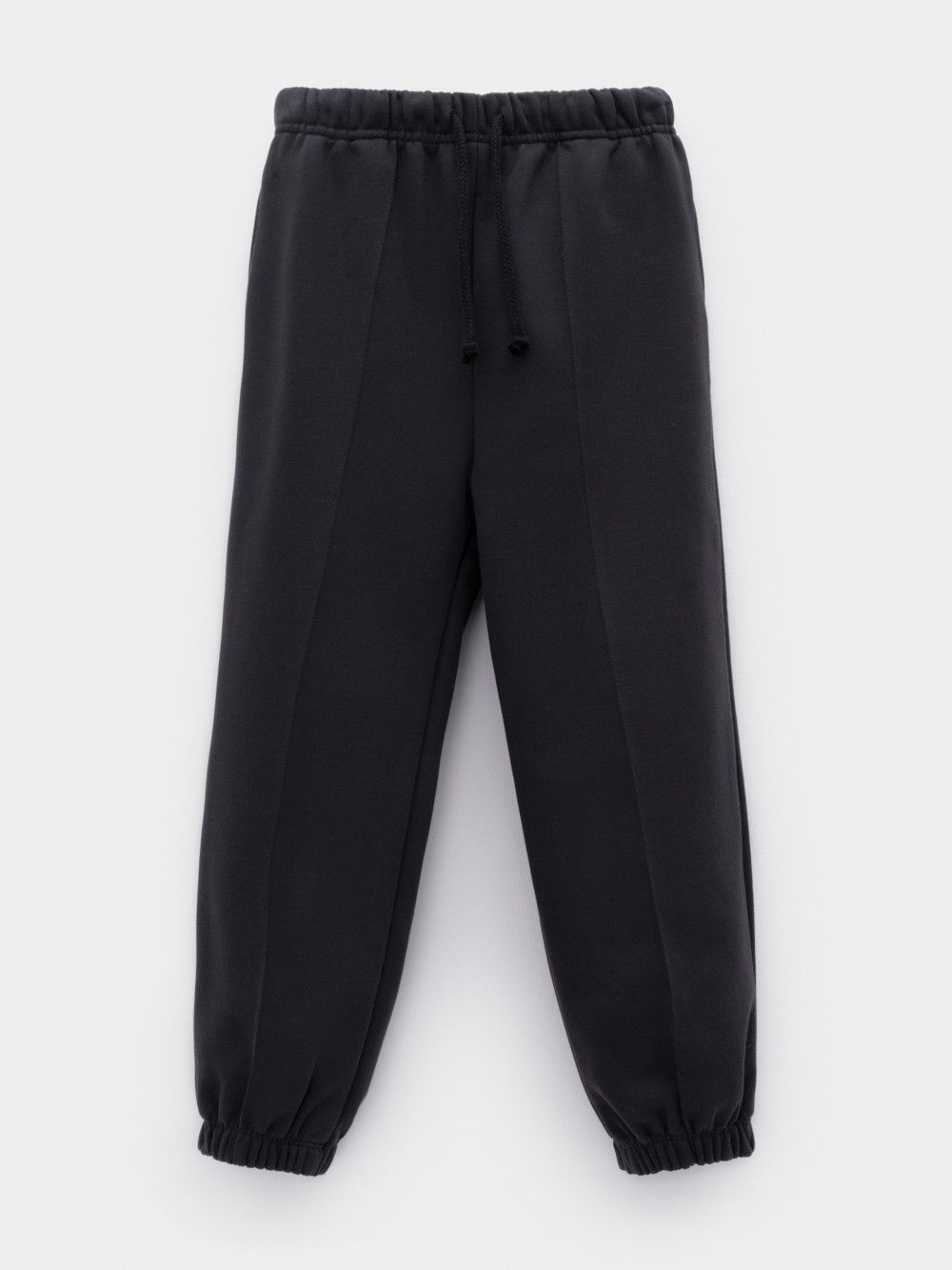 Брюки со стрелками для девочки из мягкого петельчатого трикотажа. Эластичный пояс на резинке регулируется по ширине с помощью шнурка. Внизу эластичные манжеты. По бокам два удобных кармана. Изделие сохраняет цвет и форму после многократных стирок. Все трикотажные полотна производятся в соответствии с нормами швейцарского сертификата ЭкоТекс.