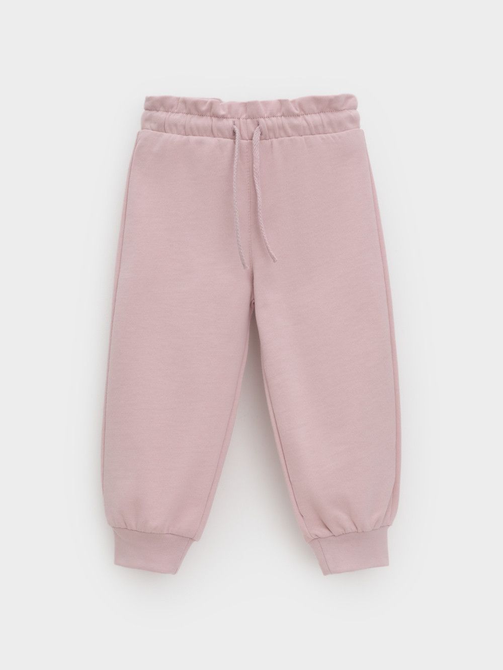 Брюки для девочки из мягкого петельчатого трикотажа. Эластичный пояс на резинке регулируется по ширине с помощью шнурка. Внизу эластичные манжеты. Изделие сохраняет цвет и форму после многократных стирок. Все трикотажные полотна производятся в соответствии с нормами швейцарского сертификата ЭкоТекс.