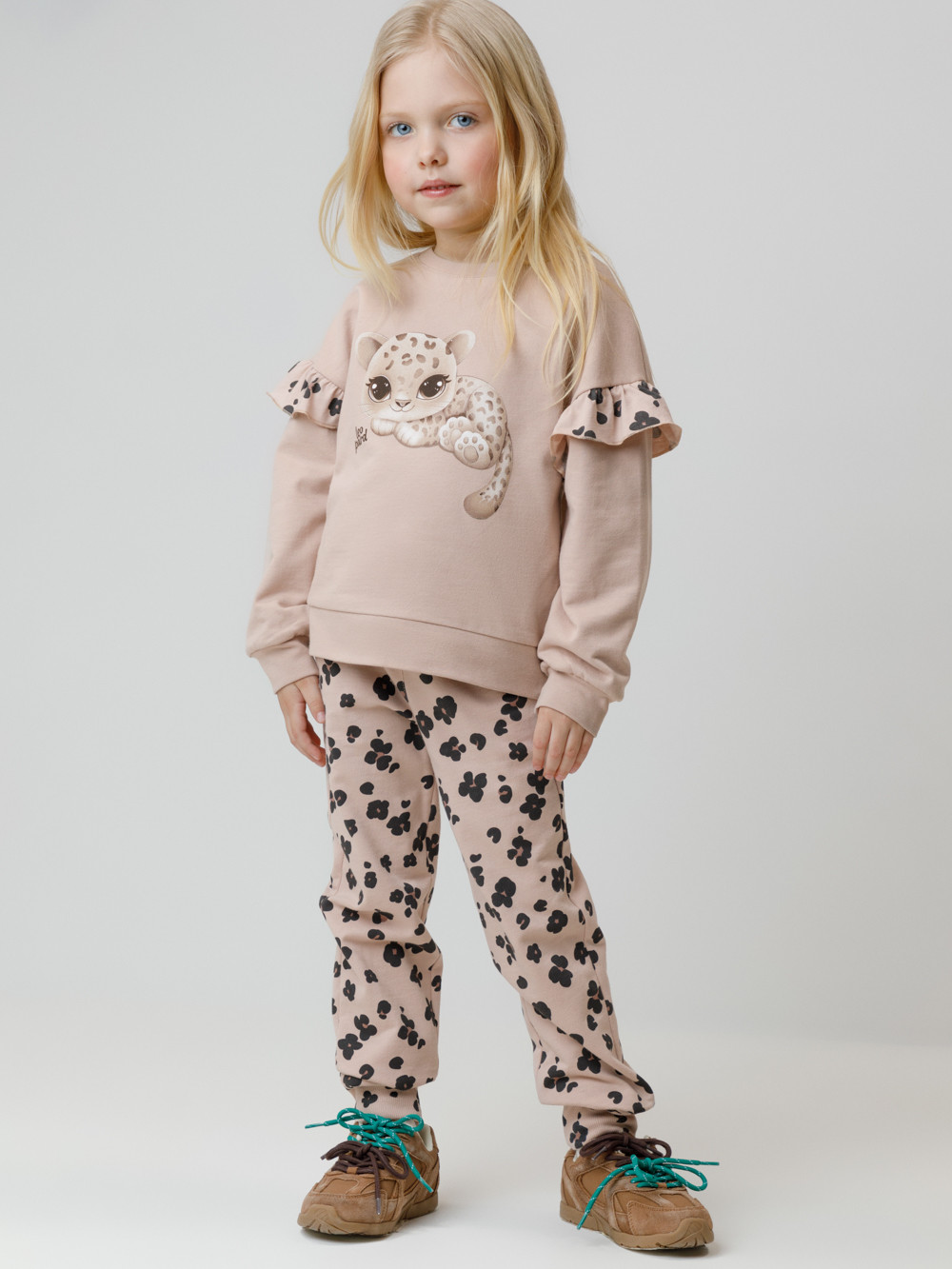 Тёплые брюки для девочки из высококачественного футера с начёсом. Эластичный пояс на резинке регулируется по ширине при помощи шнурка. Оригинальный рисунок выполнен из стойких текстильных красителей. Изделие сохраняет форму и стойкий цвет после многочисленных стирок. Все трикотажные полотна производятся в соответствии с нормами швейцарского сертификата ЭкоТекс.