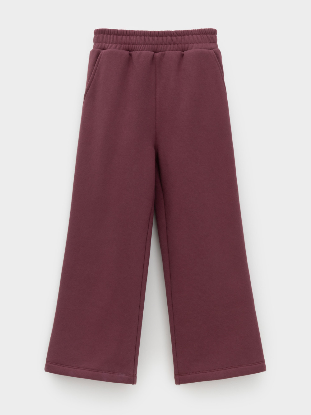Прямые брюки с эластичным поясом для девочки. Изготовлены из мягкого трикотажа с начёсом. По бокам два удобных кармана. Изделие сохраняет цвет и форму после многократных стирок. Все трикотажные полотна производятся в соответствии с нормами швейцарского сертификата ЭкоТекс.