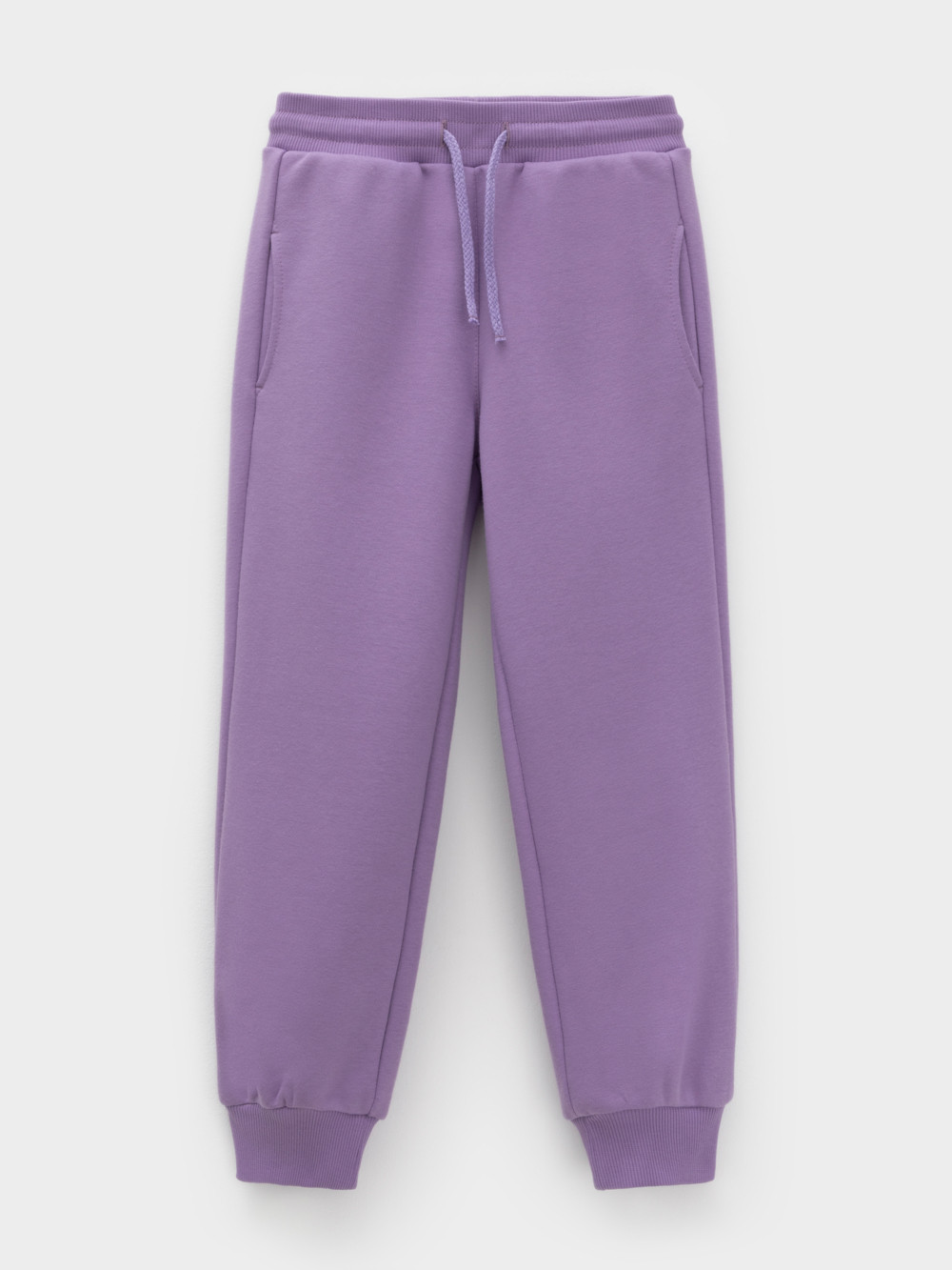 Брюки однотонные для девочки. Изготовлены из мягкого петельчатого футера трёхнитки диагональ. В составе 80% натурального хлопка и 20% полиэстера, при этом полиэстер ввязан внутрь по особой технологии и не соприкасается с кожей. Модель с эластичным поясом на резинке. Низ на манжетах. Изделие сохраняет цвет и форму после многократных стирок. Все трикотажные полотна производятся в соответствии с нормами швейцарского сертификата ЭкоТекс.