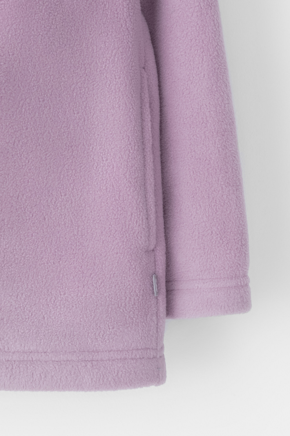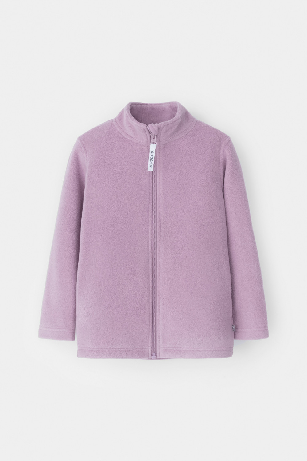 Флисовая куртка для девочки. У изделия высокий воротник, предусмотрена защита шеи и подбородка, по бокам карманы. Куртка сохраняет цвет и форму после многократных стирок.