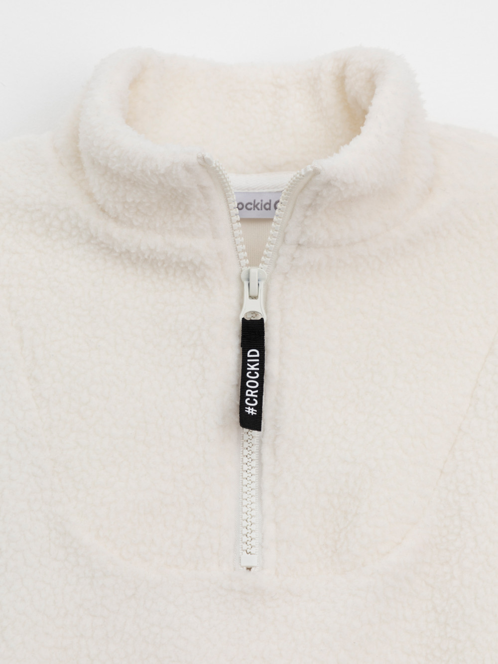 Детская толстовка из флиса. У изделия высокий воротник и застёжка спереди на короткую молнию. Рукава и низ изделия собраны на резинку. Толстовка сохраняет цвет и форму после многократных стирок.