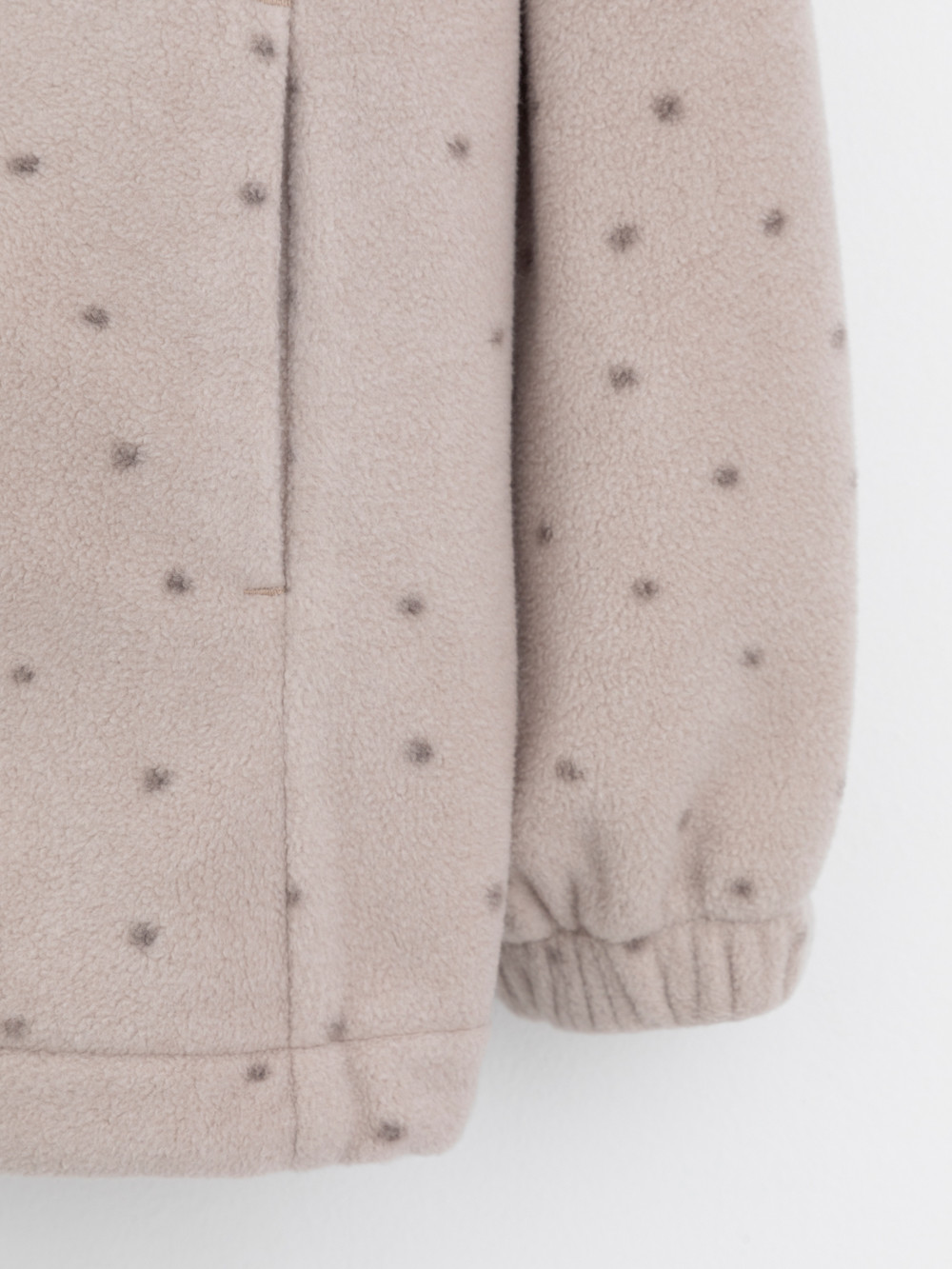 Флисовая куртка для девочки. У изделия высокий воротник и застёжка на молнию с мягкой защитой шеи и подбородка. По бокам два кармана. Рукава собраны на резинку. Низ изделия регулируется по ширине с помощью эластичной утяжки со стопперами. Куртка сохраняет цвет и форму после многократных стирок.