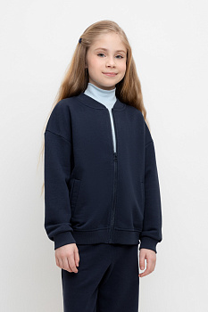Трикотажная школьная куртка для девочки на молнии с карманами. Произведена из мягкого трикотажного футера трёхнитки. В составе 80% натурального хлопка и 20% полиэстера, при этом полиэстер ввязан внутрь по особой технологии и не соприкасается с кожей.