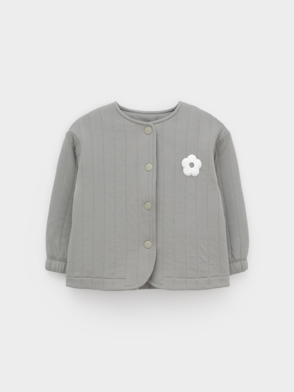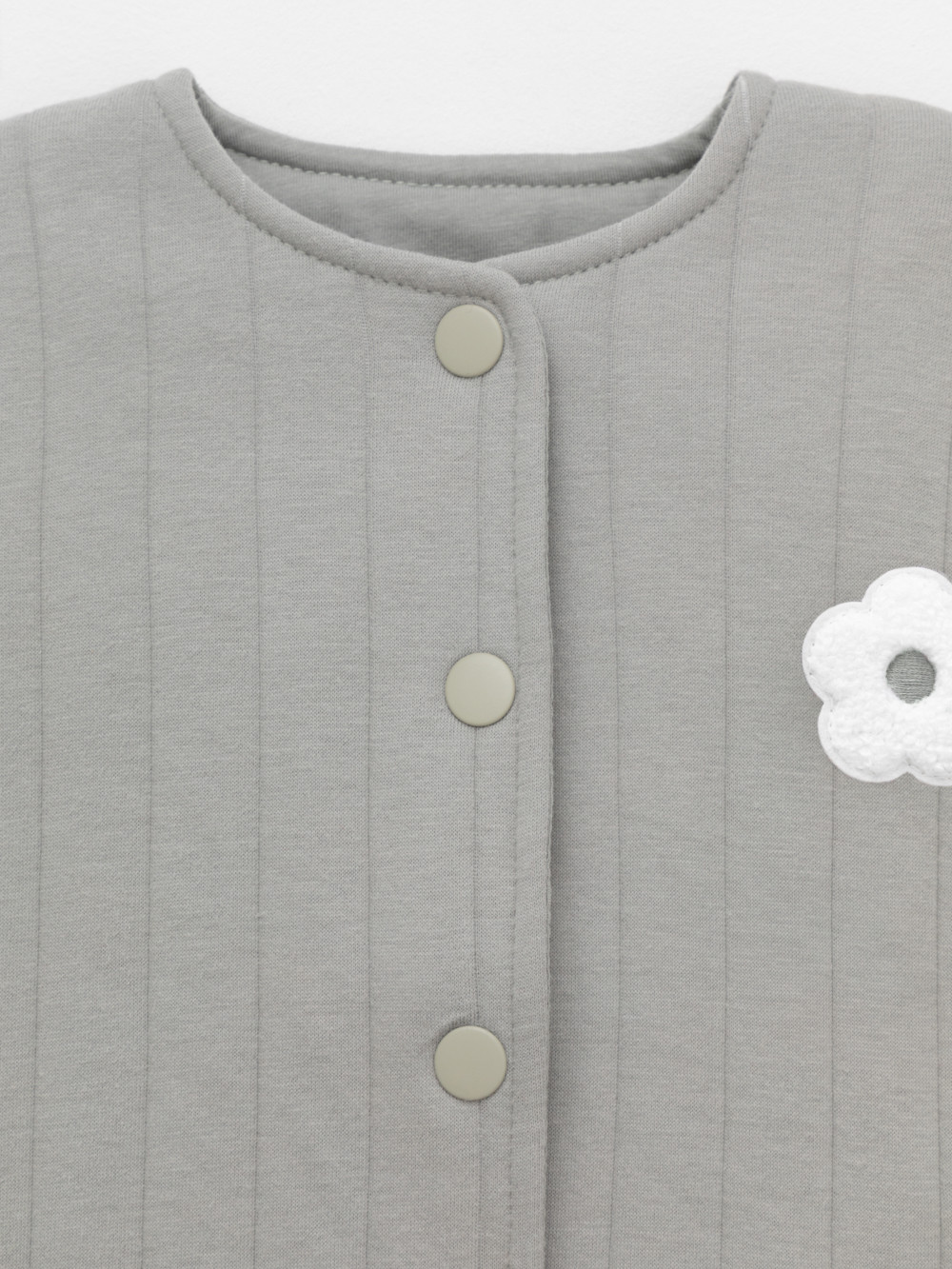 Тёплый бомбер для девочки из мягкого капитония. Капитоний – это стёганое трикотажное полотно с утеплителем из полиэстеровой нити. Модель со спущенным плечом застёгивается на кнопки. По бокам два кармана. Все трикотажные полотна производятся в соответствии с нормами швейцарского сертификата ЭкоТекс.