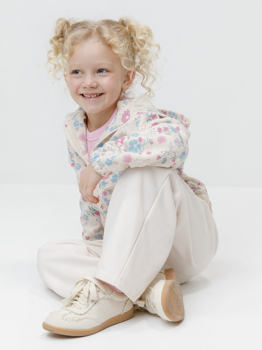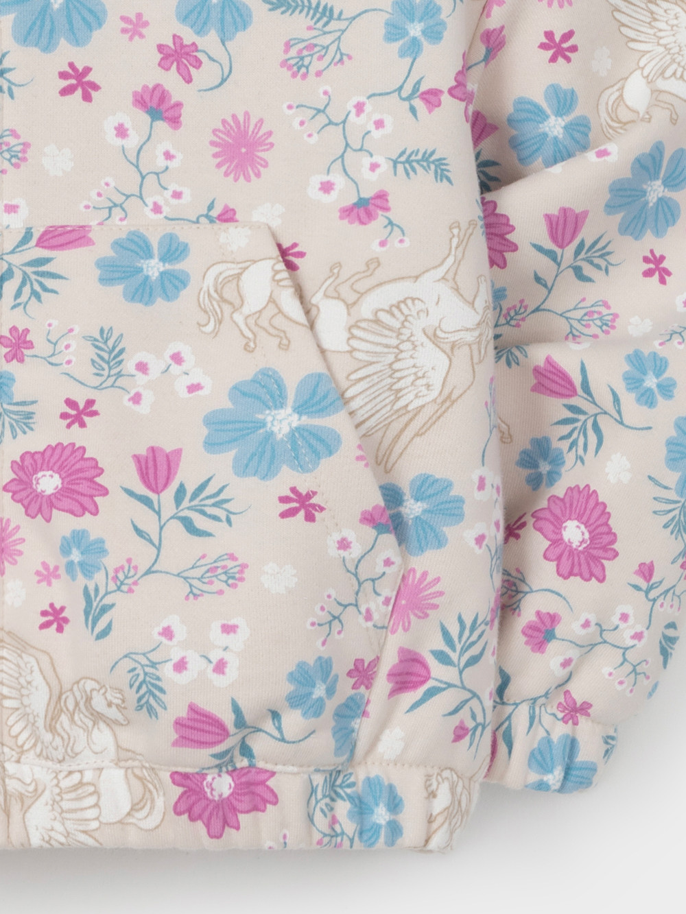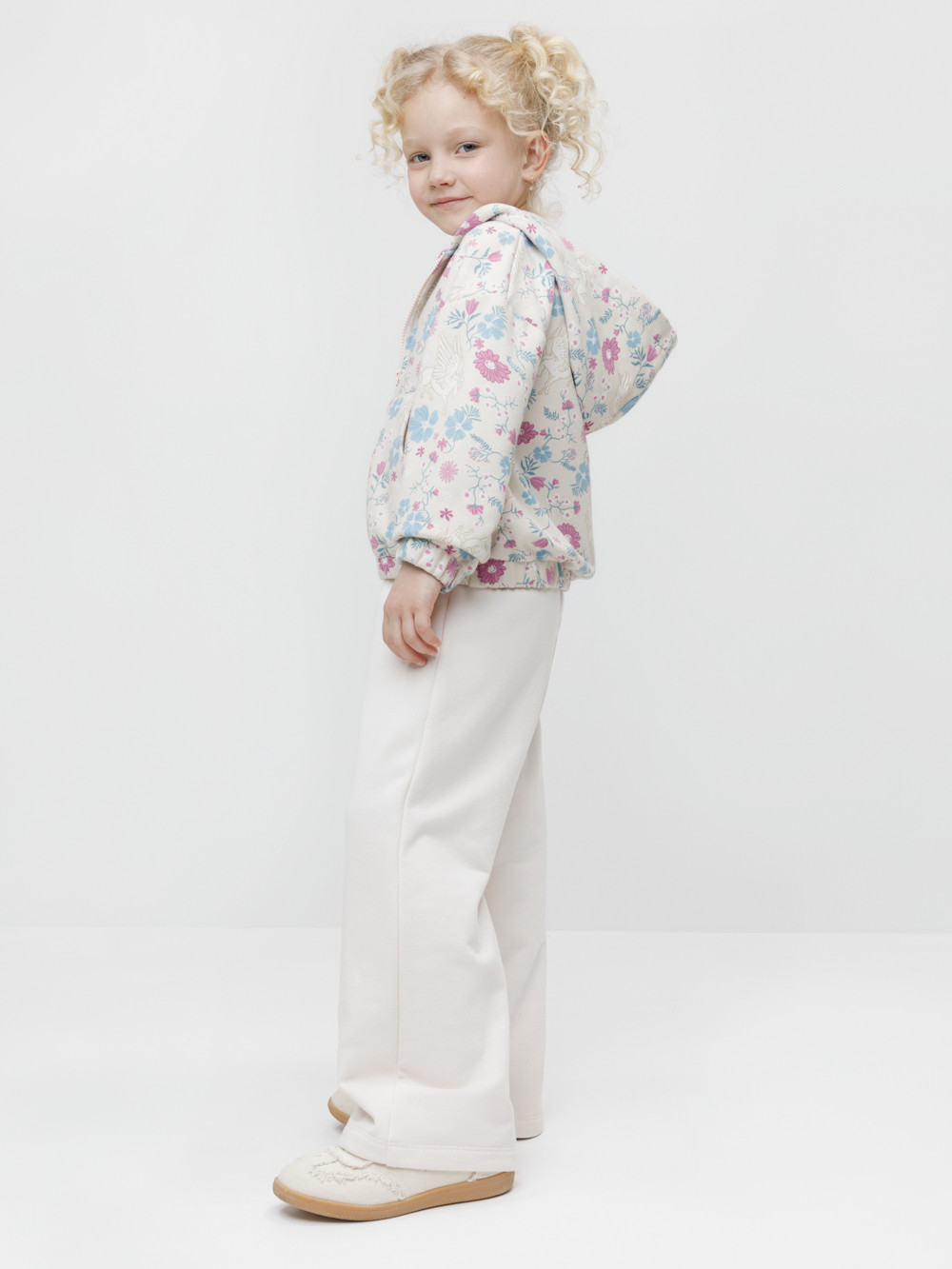 Трикотажная толстовка с капюшоном для девочки. Изготовлена из мягкого футера с оригинальным рисунком. В составе 80% натурального хлопка и 20% полиэстера, при этом полиэстер ввязан внутрь по особой технологии и не соприкасается с кожей. Застёгивается на молнию. Манжеты и пояс на резинке. Изделие сохраняет цвет и форму после многократных стирок. Все трикотажные полотна производятся в соответствии с нормами швейцарского сертификата ЭкоТекс.