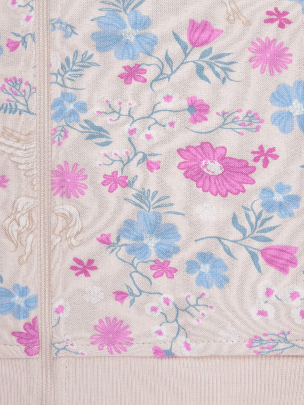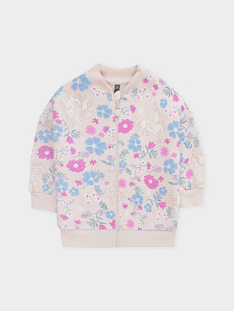 Трикотажная куртка-бомбер для девочки. Изготовлена из мягкого футера петли трёхнитки. Застёгивается на молнию с мягкой защитой шеи и подбородка. По бокам два кармана. Воротничок, манжеты и пояс выполнены из эластичного трикотажа в рубчик. Изделие сохраняет цвет и форму после многократных стирок. Все трикотажные полотна производятся в соответствии с нормами швейцарского сертификата ЭкоТекс.