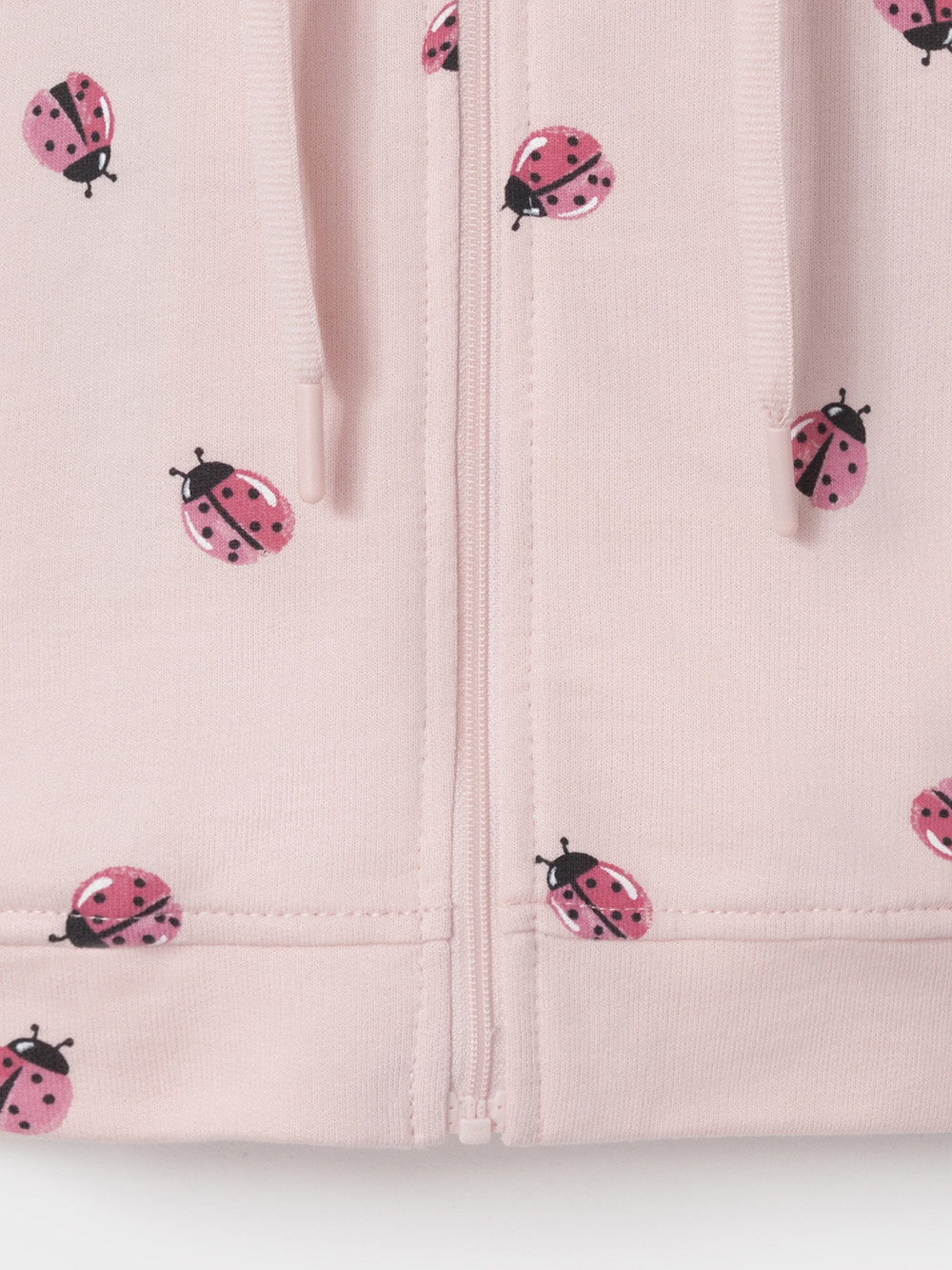 Трикотажная толстовка с капюшоном для девочки. Изготовлена из мягкого набивного футера петли. Застёгивается на молнию с мягкой защитой шеи и подбородка. По бокам два кармана. Манжеты на резинке. По низу пояс из футера. Изделие сохраняет цвет и форму после многократных стирок. Все трикотажные полотна производятся в соответствии с нормами швейцарского сертификата ЭкоТекс.