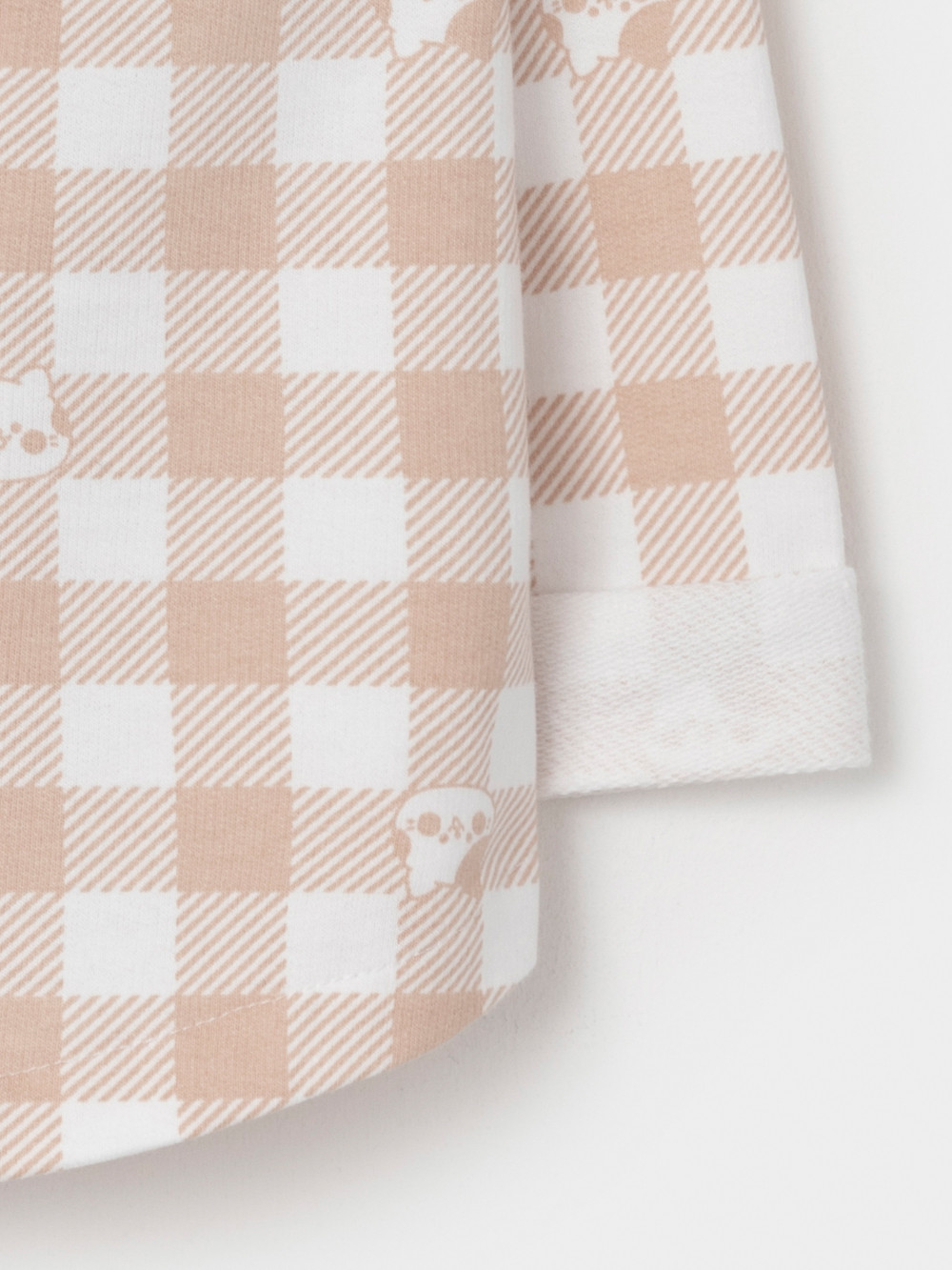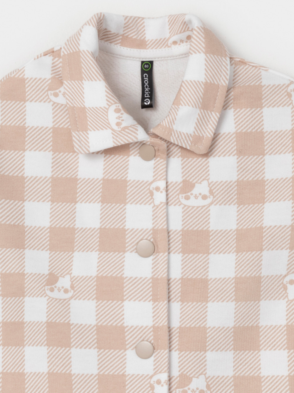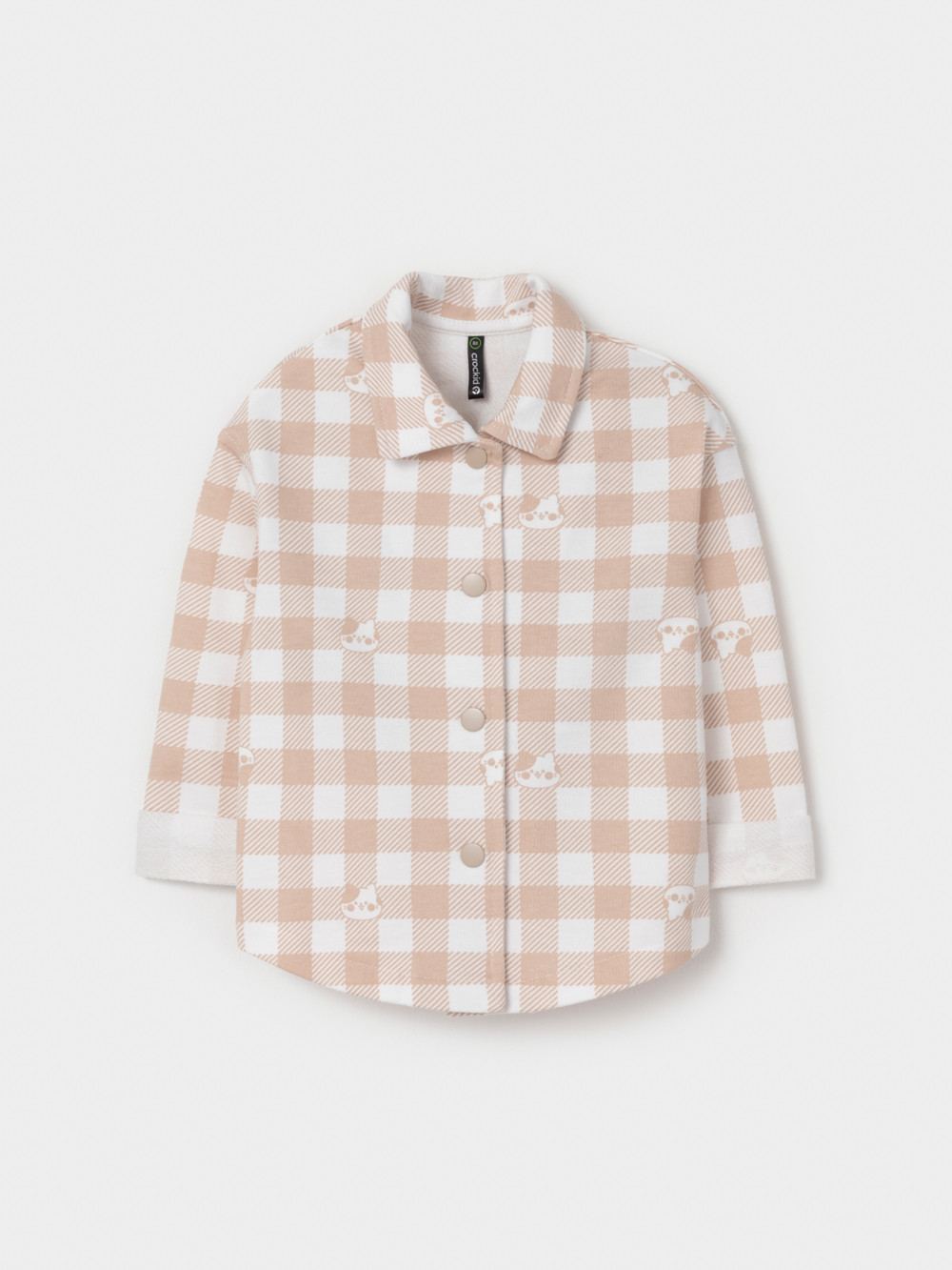 Рубашка с длинными спущенными рукавами для девочки. Изготовлена из мягкого петельчатого трикотажа, который произведён из 100% натурального хлопка высокого качества. Изделие отлично дышит, а свободный крой не стесняет движения, поэтому рубашка комфортна для активных игр и отдыха. Застёгивается на кнопки. Оригинальный набивной рисунок выполнен из стойких текстильных красителей. Изделие сохраняет цвет и форму после многократных стирок. Все трикотажные полотна производятся в соответствии с нормами швейцарского сертификата ЭкоТекс.