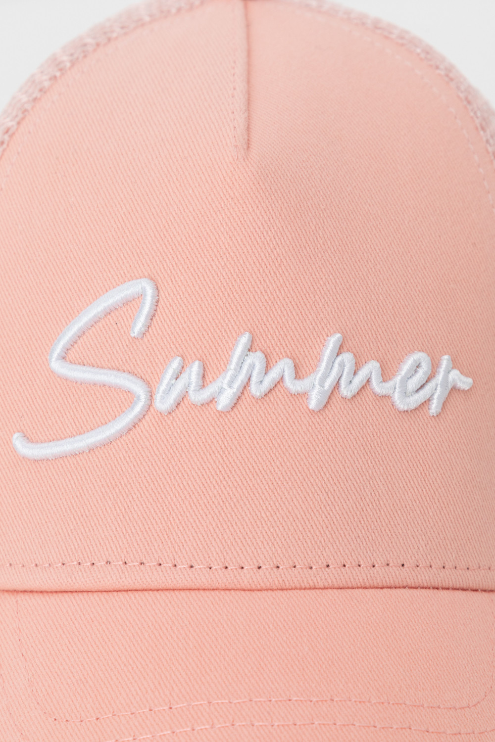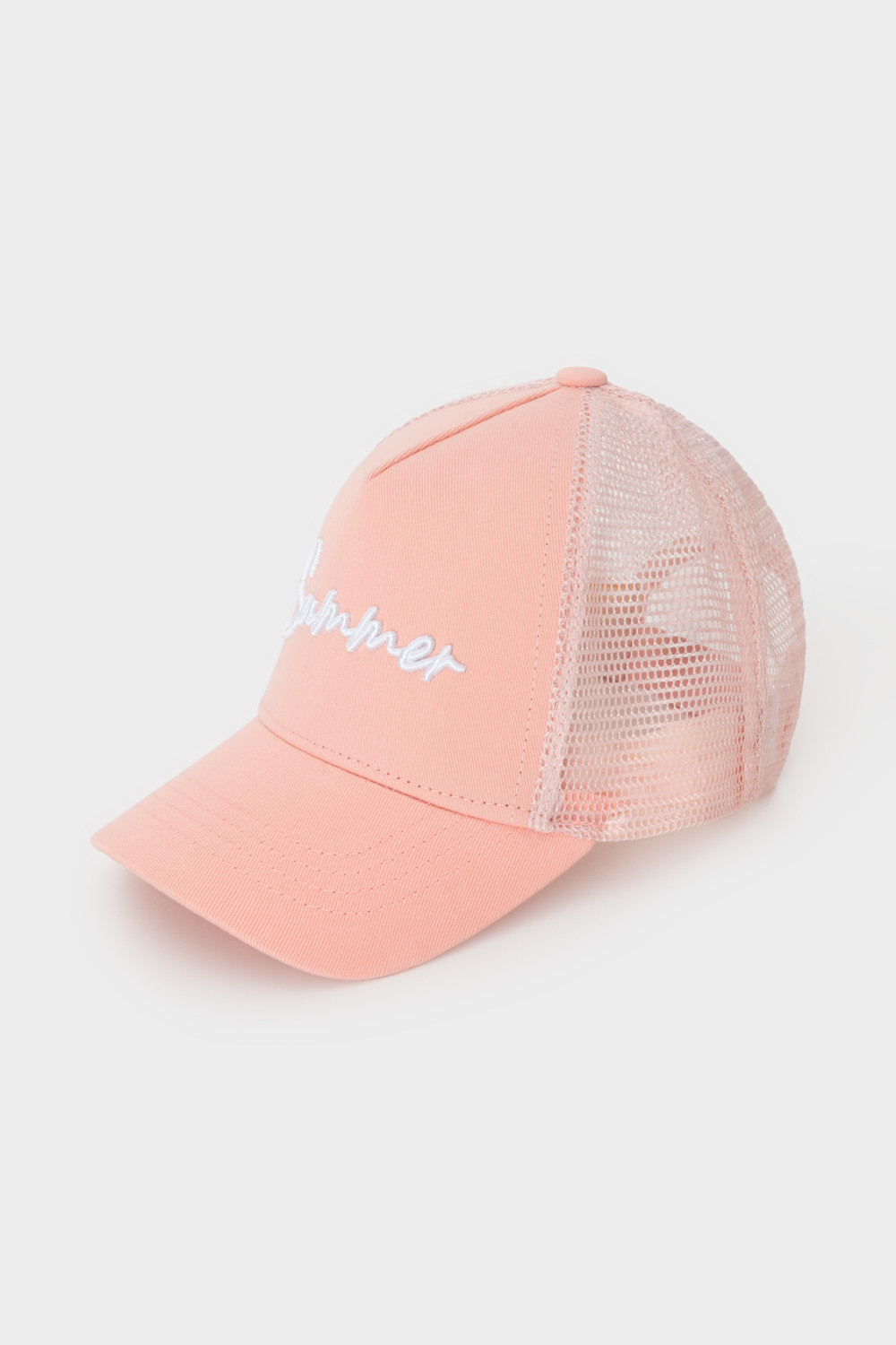 Кепка для девочки из текстиля и сетки. Спереди украшена оригинальной вышивкой. Регулируется по ширине головы и фиксируется на затылке с помощью пластиковой застёжки.