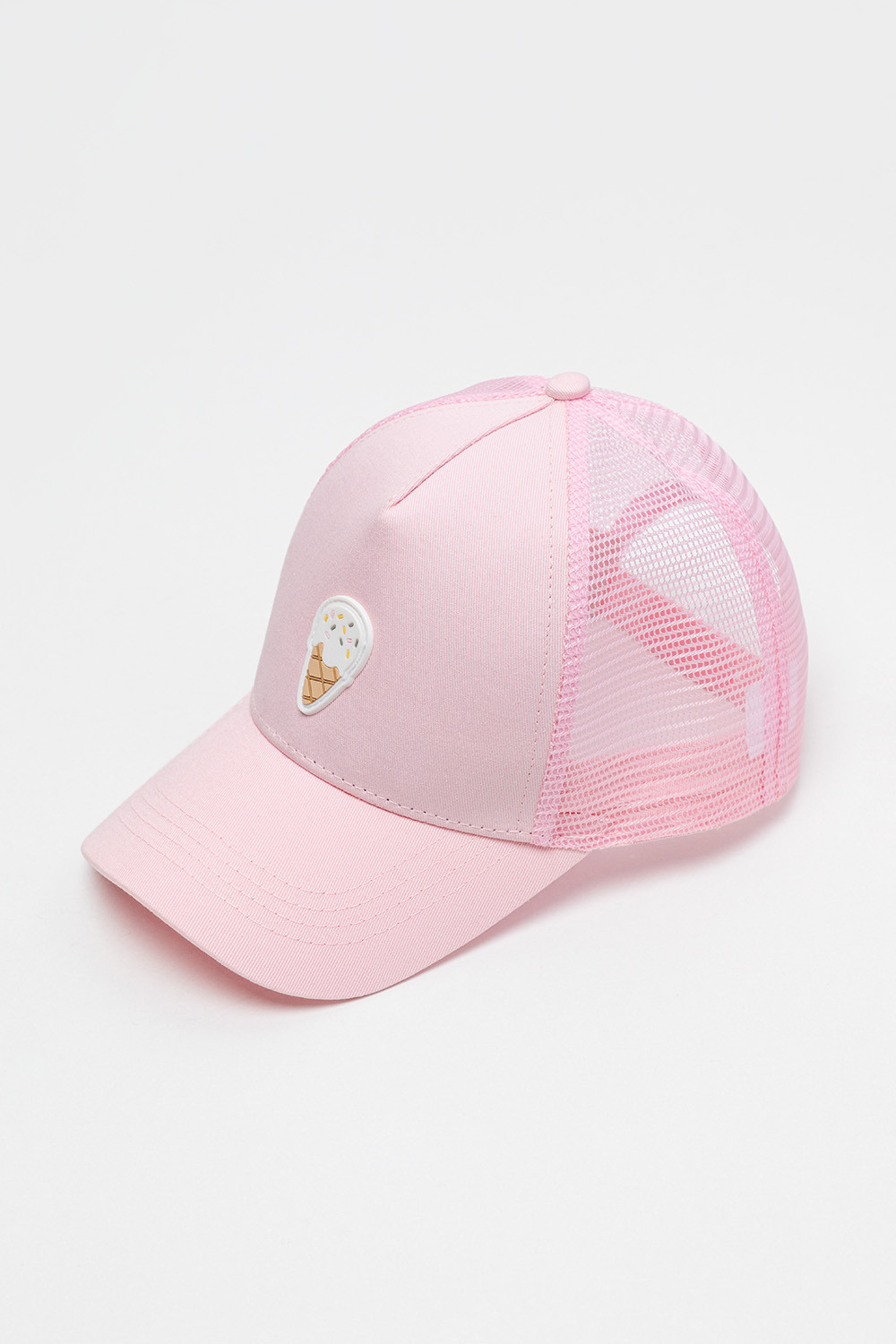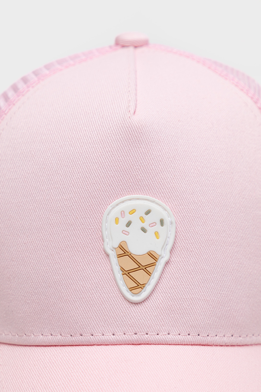 Кепка для девочки из текстиля и сетки. Спереди оригинальная нашивка. Регулируется по ширине и фиксируется на затылке с помощью пластиковой застежки.