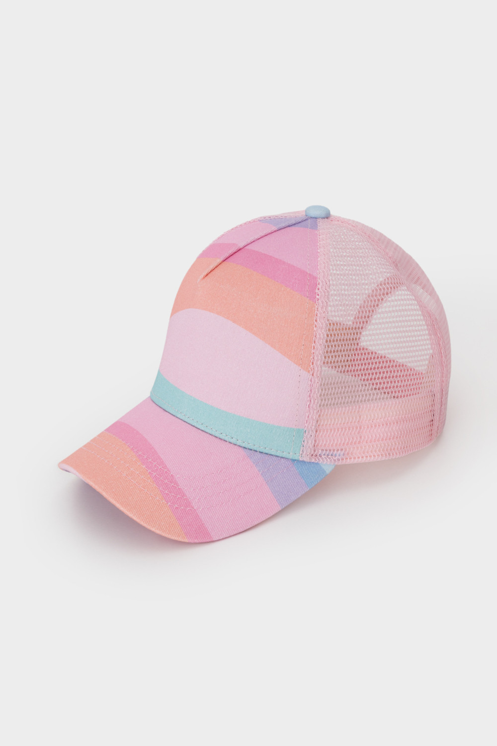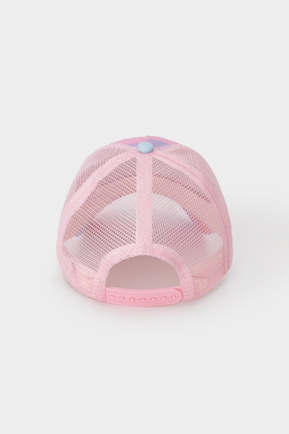 Кепка для девочки из текстиля и сетки. Оригинальная набивка выполнена из стойких гипоаллергенных текстильных красителей. Регулируется по ширине головы и фиксируется на затылке с помощью пластиковой застёжки.