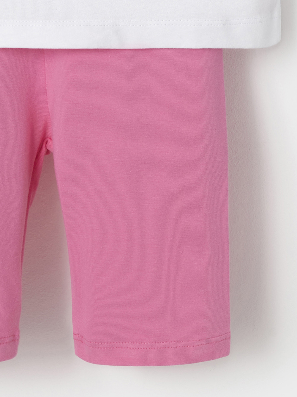 Набор трикотажный для девочки: футболка с короткими спущенными рукавами и велосипедки. Футболка изготовлена из гладкого трикотажа супрем, который произведён из 100% натурального хлопка высокого качества. Велосипедки выполнены из хлопкового трикотажа с небольшим добавлением эластана. Изделия отлично дышат и хорошо тянутся, поэтому не стесняют движения и комфортны для игр и занятий спортом. Оригинальный принт выполнен из стойких текстильных гипоаллергенных красителей. Комплект сохраняет цвет и форму после многократных стирок. Все трикотажные полотна производятся в соответствии с нормами швейцарского сертификата ЭкоТекс.