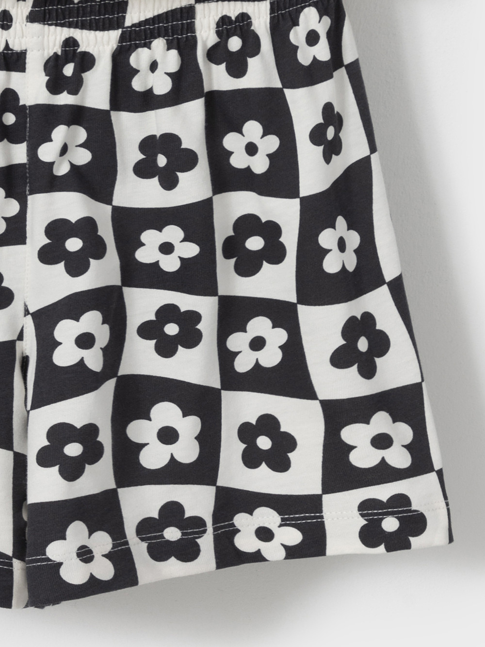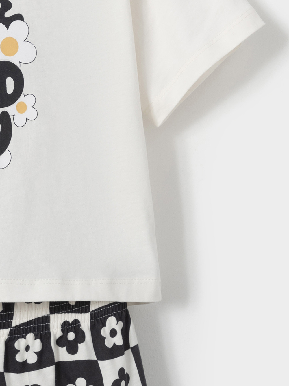 Набор трикотажный для девочки: футболка с короткими спущенными рукавами и свободные шорты. Комплект изготовлен из гладкого трикотажа супрем, который произведён из 100% натурального хлопка высокого качества. Изделия отлично дышат, а свободный крой не стесняет движения, поэтому футболка и шорты комфортны для активных игр, отдыха и занятий спортом. Оригинальный принт и набивка выполнены из стойких текстильных гипоаллергенных красителей. Комплект сохраняет цвет и форму после многократных стирок. Все трикотажные полотна производятся в соответствии с нормами швейцарского сертификата ЭкоТекс.