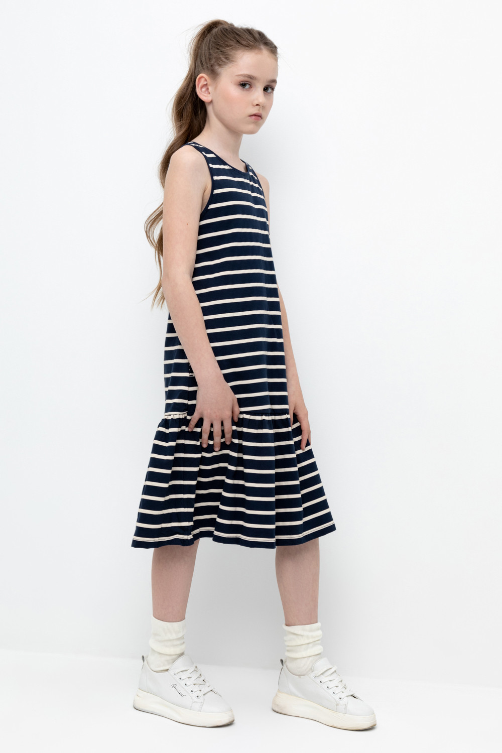 Летний сарафан для девочки из высококачественного трикотажного полотна. Оригинальная набивка выполнена из стойких текстильных красителей.