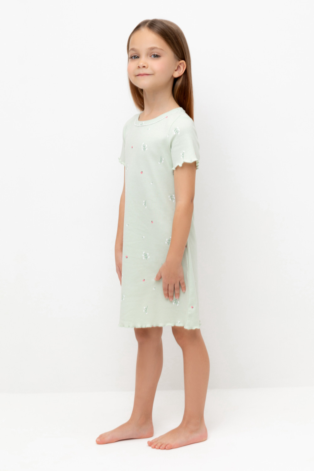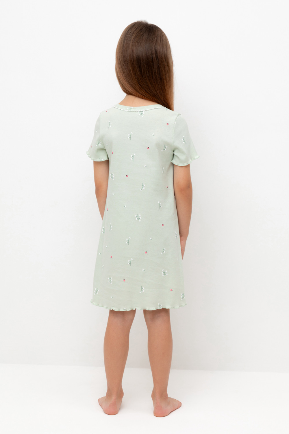 Сорочка из мягкого натурального хлопка с короткими втачными рукавами. Оригинальная набивка выполнена из стойких гипоаллергенных текстильных гипоаллергенных красителей. Изделие сохраняет цвет и форму после многократных стирок. Все трикотажные полотна производятся в соответсвии с нормами швейцарского сертификата ЭкоТекс.