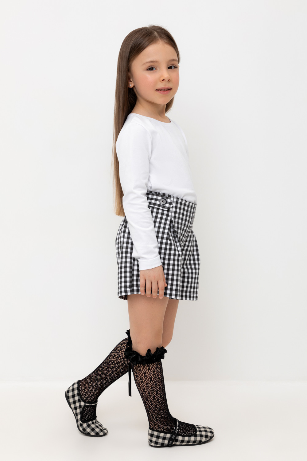 Трикотажные объемные шорты для девочки из набивного петельчатого футера. Пояс по спинке на резинке, по бокам два удобных кармана. Оригинальная набивка выполнена из стойких текстильных гипоаллергенных красителей.