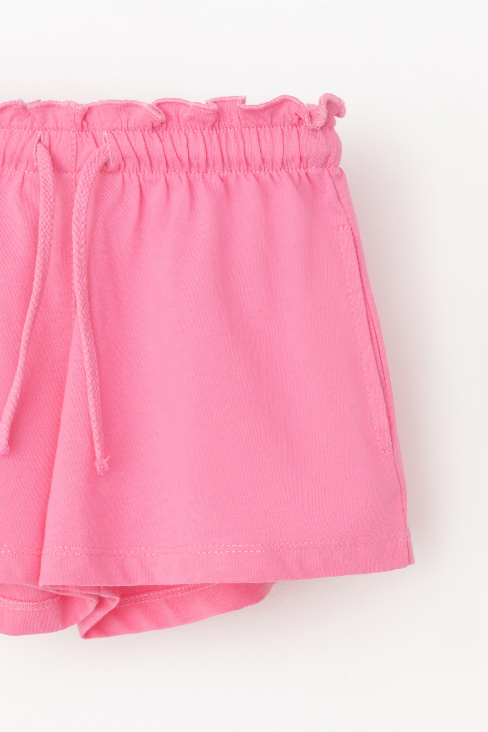 Легкие трикотажные шорты для девочки из высококачественного хлопка. Эластичный пояс регулируется при помощи шнурка. Изделие сохраняет форму и стойкий цвет после многочисленных стирок и идеально подходит на каждый день.