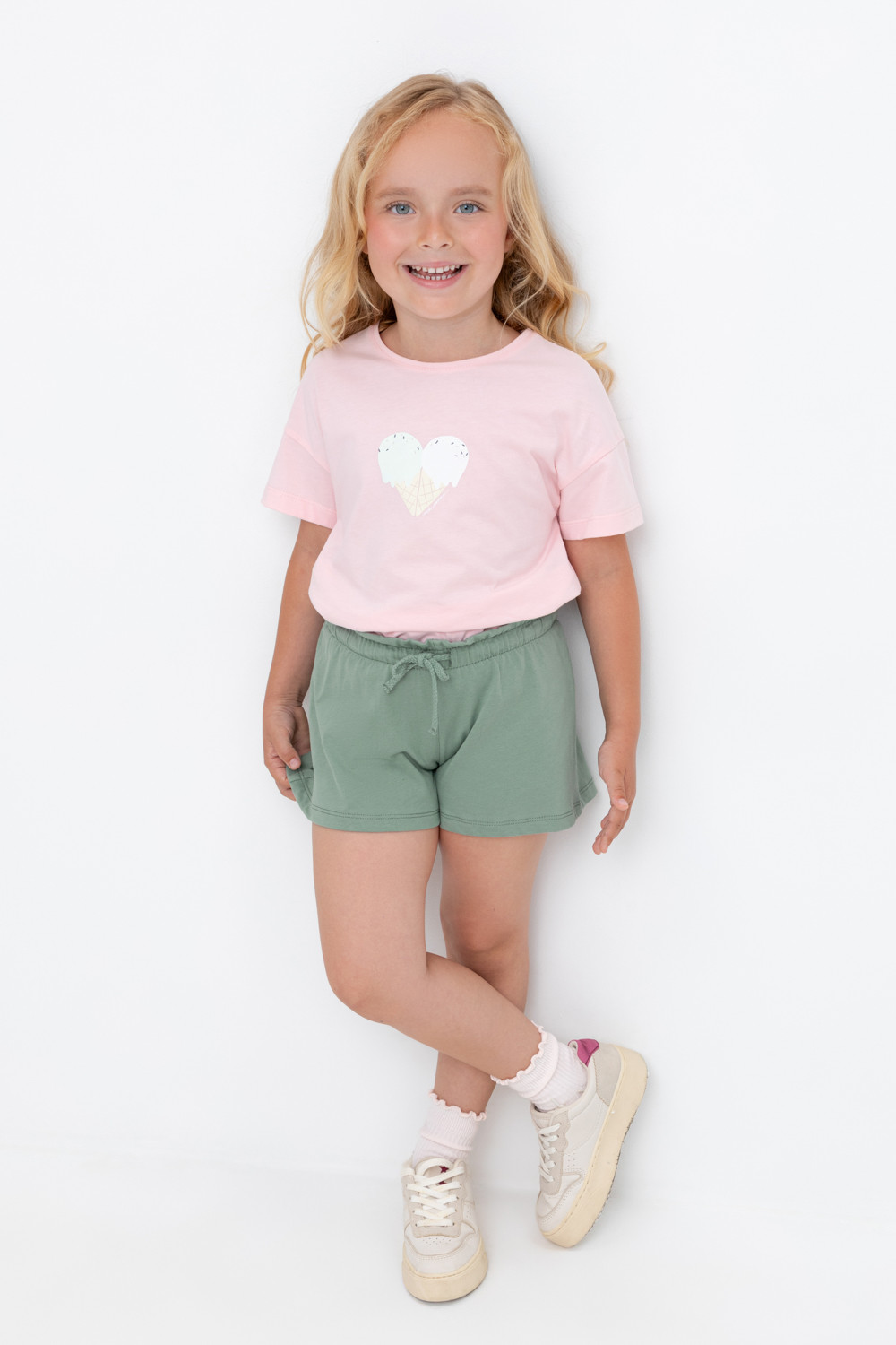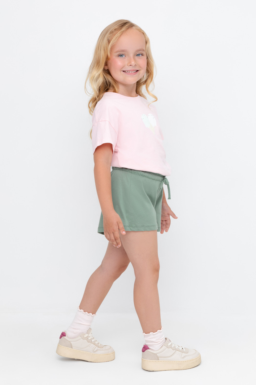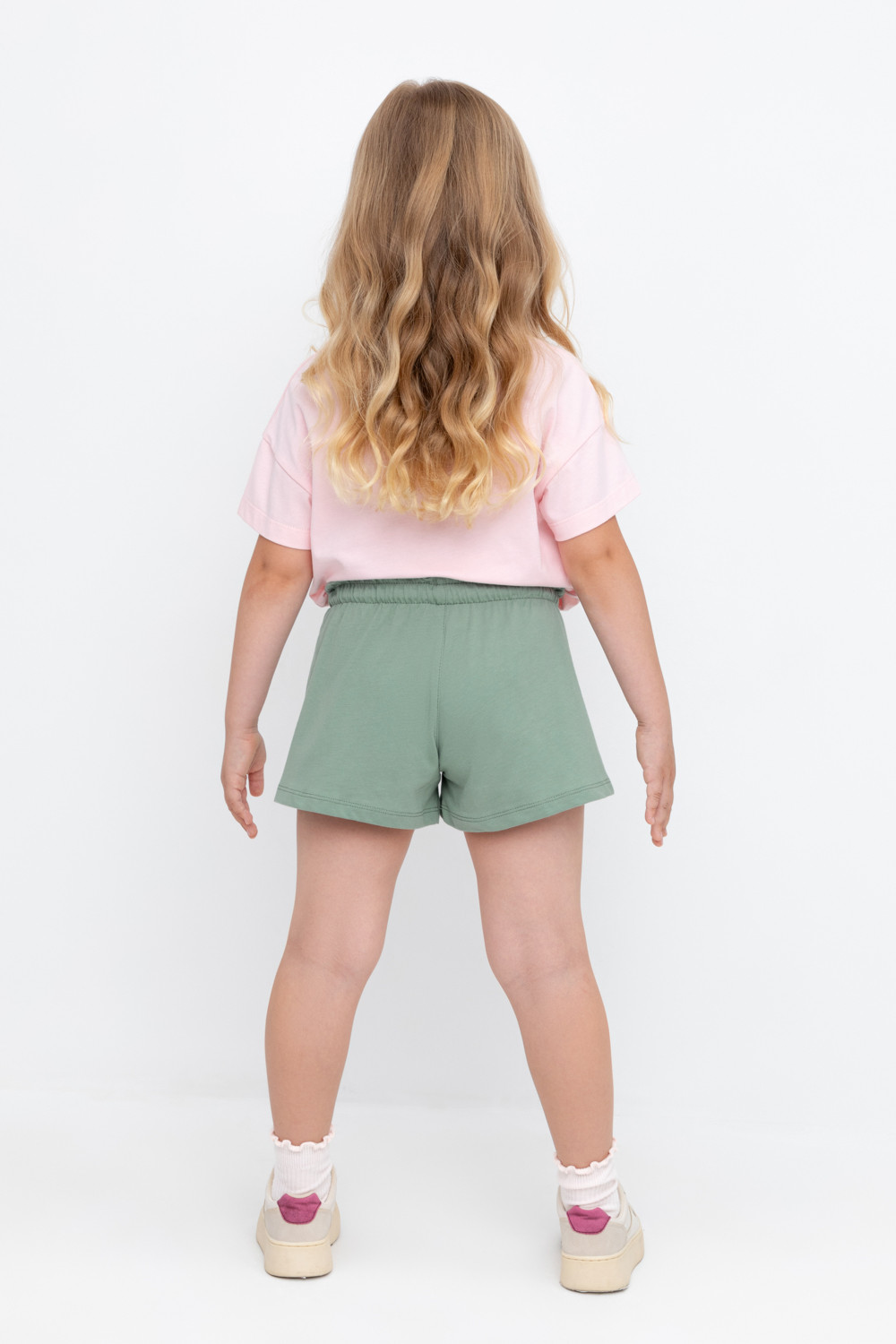 Легкие трикотажные шорты для девочки из высококачественного хлопка. Изделие сохраняет цвет и форму после многократных стирок