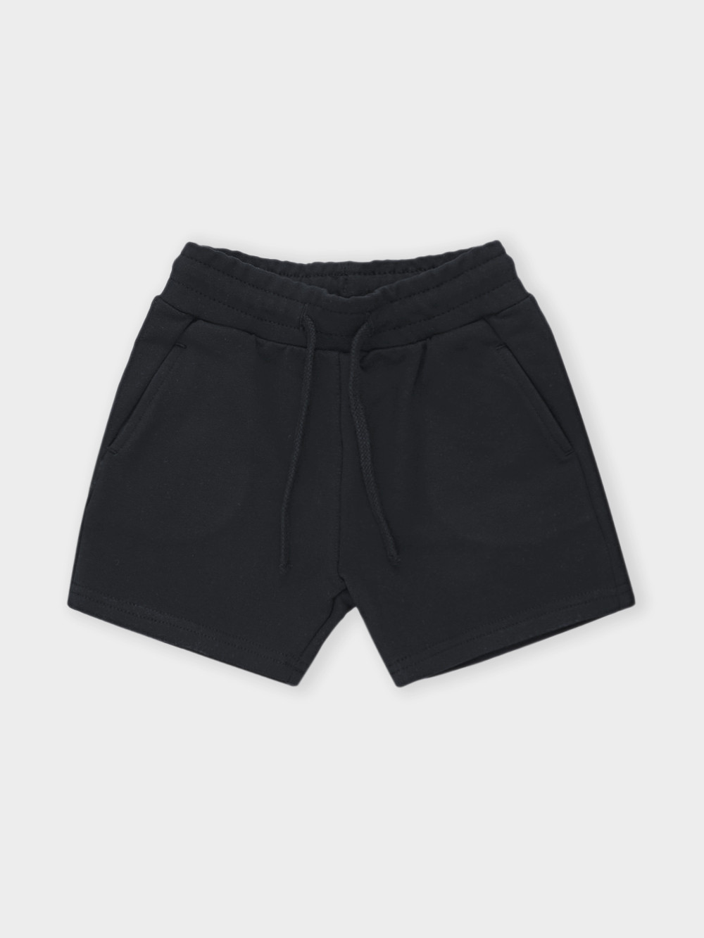 Шорты для девочки из однотонного футера с добавлением спандекса, который придаёт эластичность. Модель с мягким поясом на резинке и регулировкой по талии с помощью шнурка. Изделие сохраняет цвет и форму после многократных стирок. Все трикотажные полотна производятся в соответствии с нормами швейцарского сертификата ЭкоТекс.