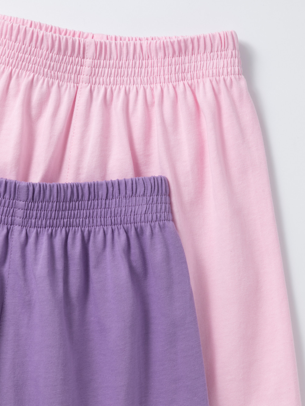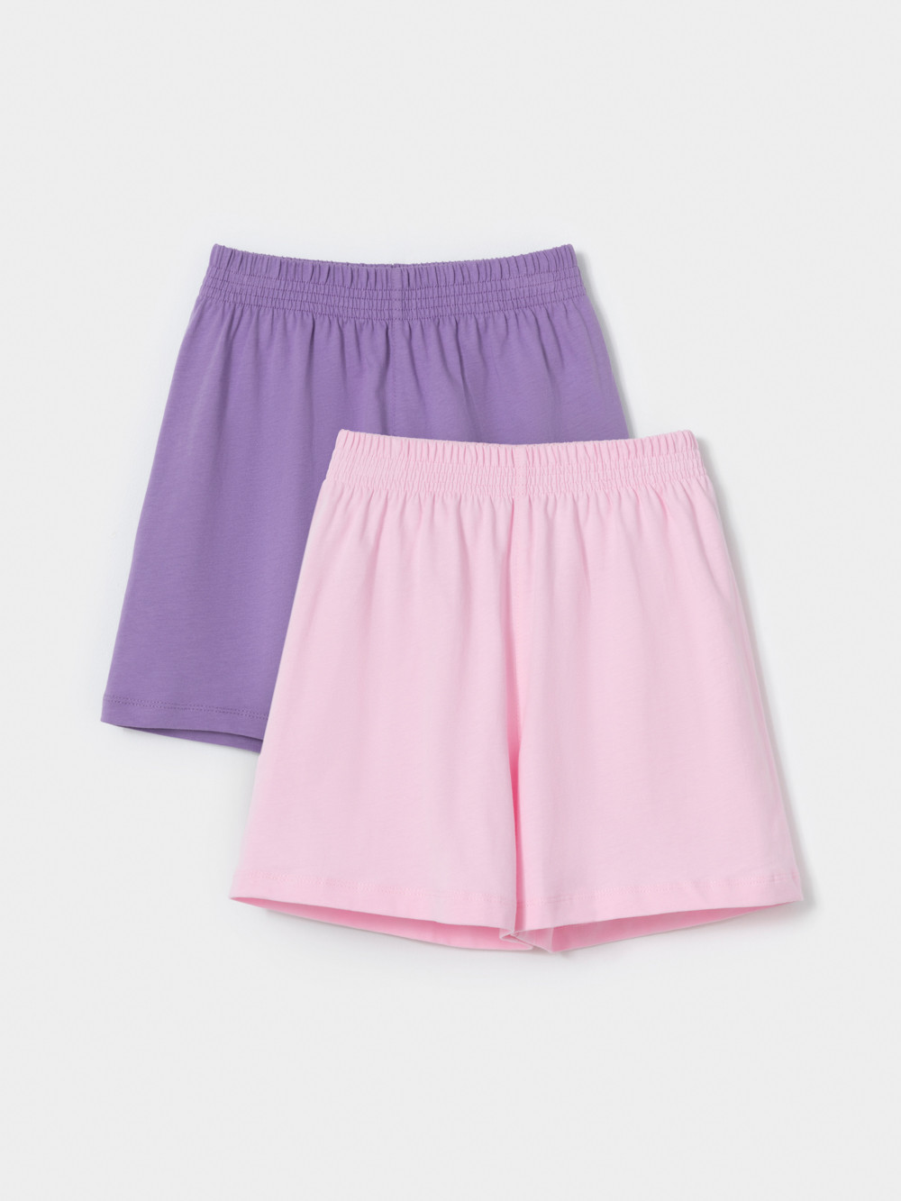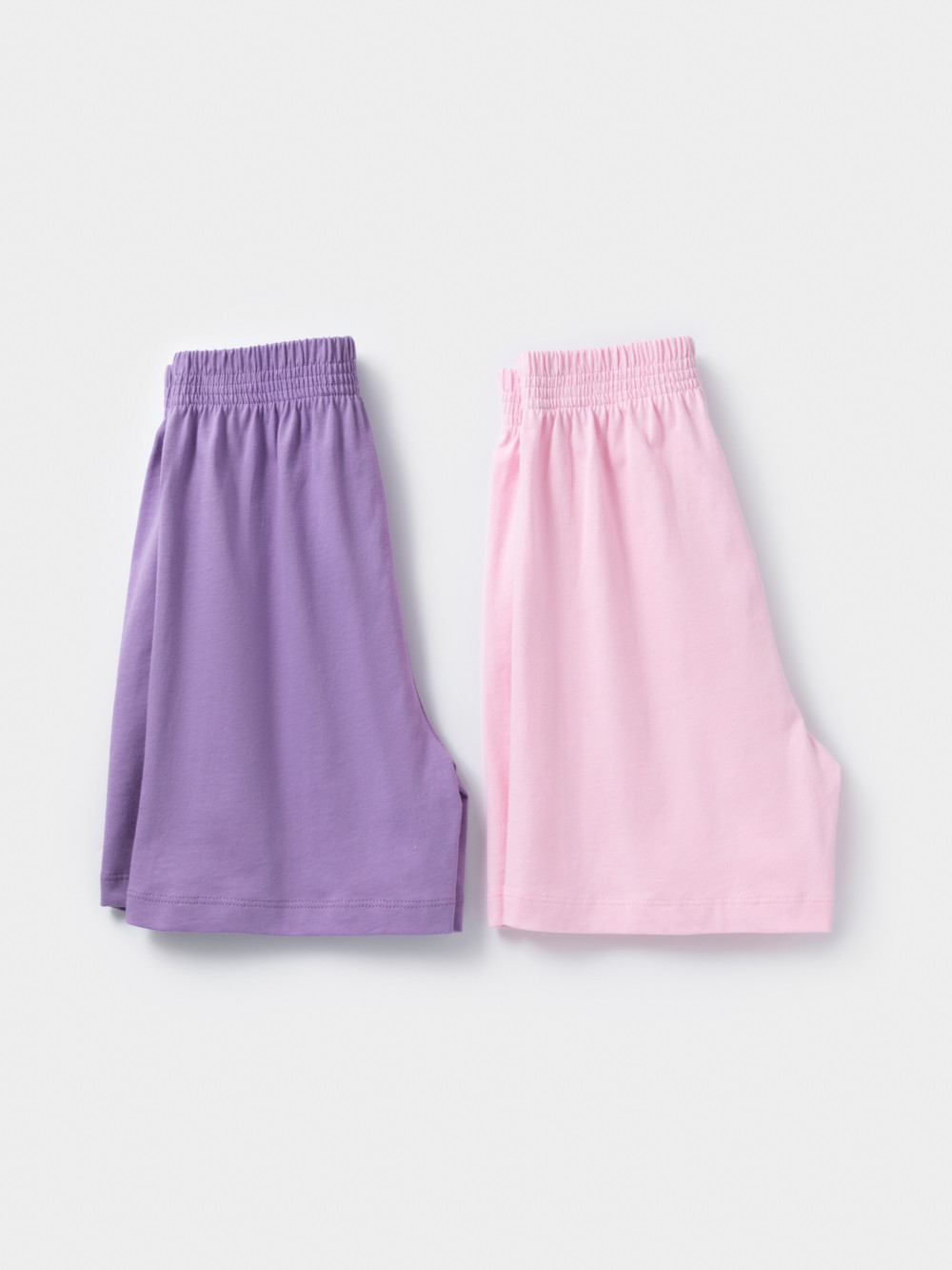 Трикотажные шорты для девочки, комплект из 2 штук. Изготовлены из гладкого трикотажа супрем, который произведён из 100% натурального хлопка высокого качества. Шорты отлично дышат, а свободный крой не стесняет движения, поэтому они комфортны для активных игр, отдыха и занятий спортом. Изделия сохраняют цвет и форму после многократных стирок. Все трикотажные полотна производятся в соответствии с нормами швейцарского сертификата ЭкоТекс.