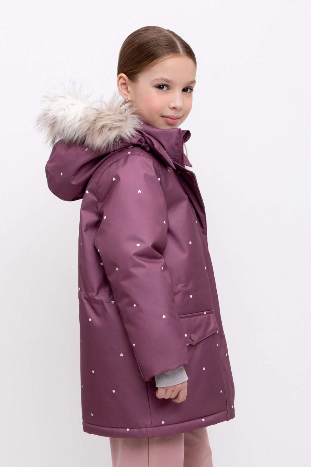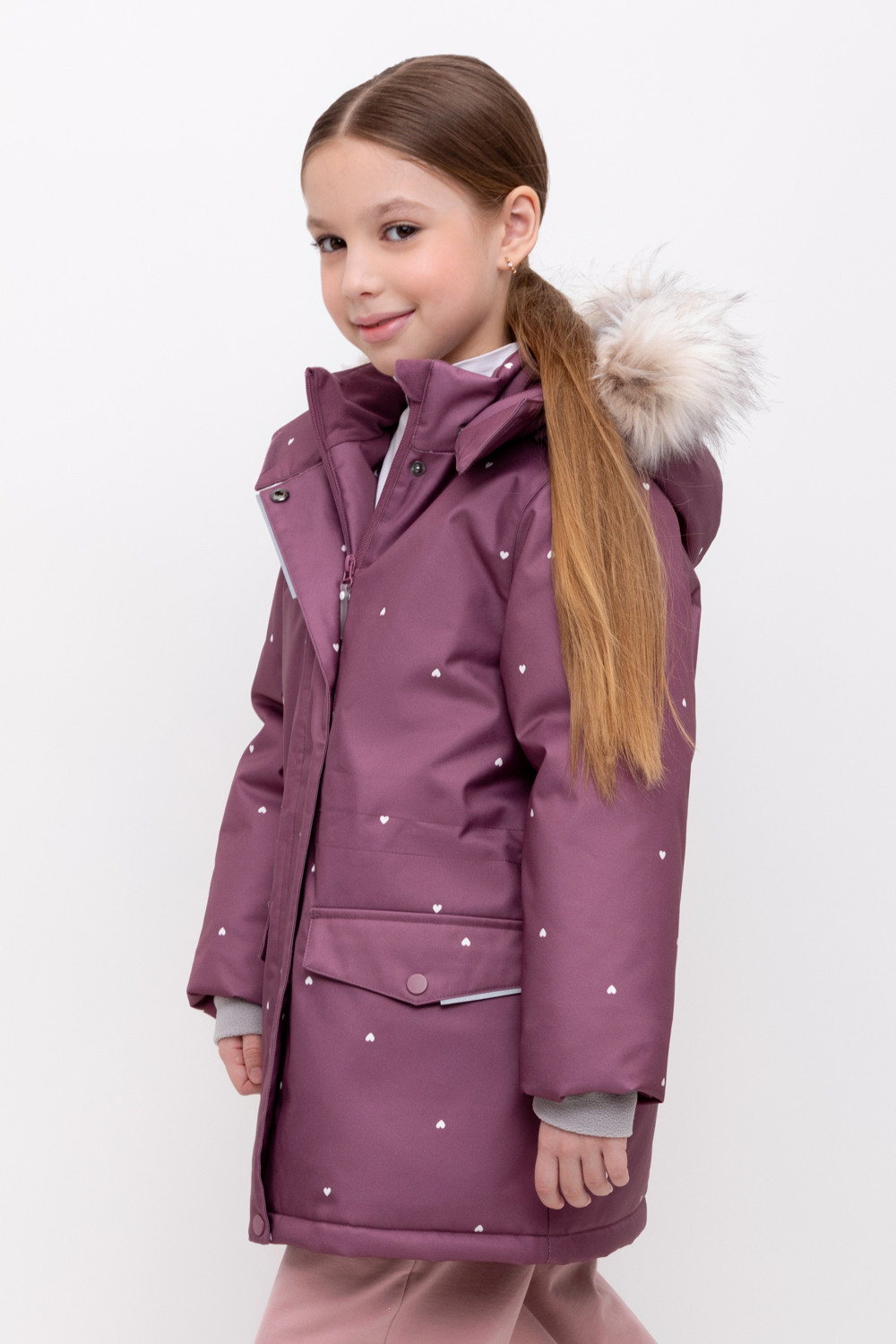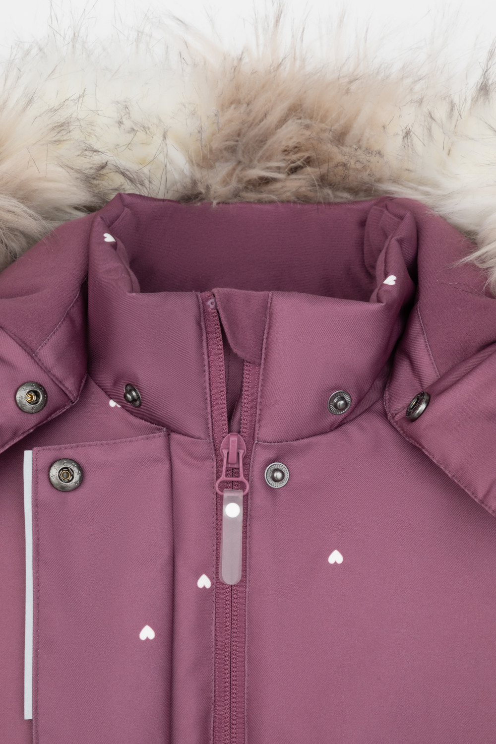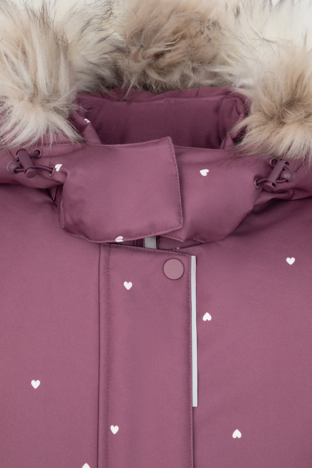 • Съемный капюшон на липучках с отстегивающимся искусственным мехом и утяжкой со стопперами по бокам капюшона