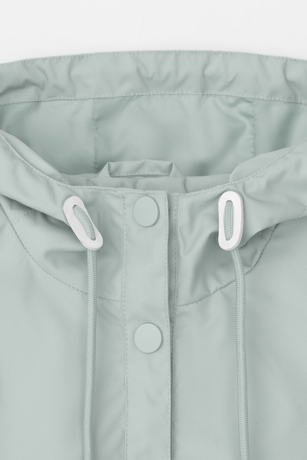 Ветровка для девочки из мембранной ткани с дополнительной тефлоновой обработкой. Верхняя мембранная ткань 1000/1000 с тефлоновым покрытием отталкивает воду и грязь и обладает «дышащими» свойствами. Подкладка выполнена из 100% полиэстера. У изделия предусмотрена защита подбородка. Несъемный капюшон регулируется с помощью эластичного шнура со стопперами. Манжеты на резинке регулируются по ширине с помощью липучек.  Во всех изделиях верхнего ассортимента для безопасности ребенка предусмотрены светоотражающие элементы.