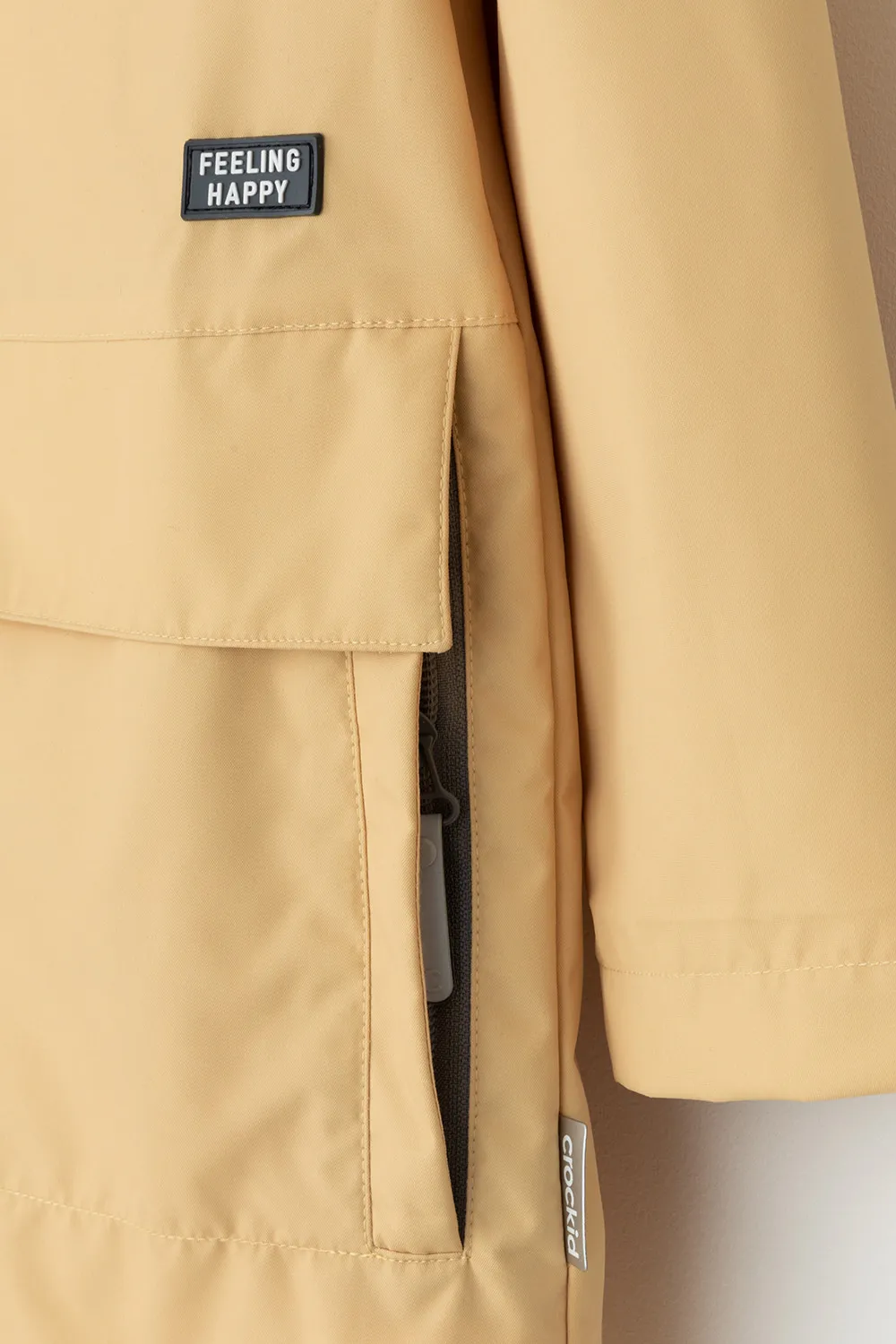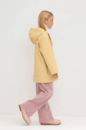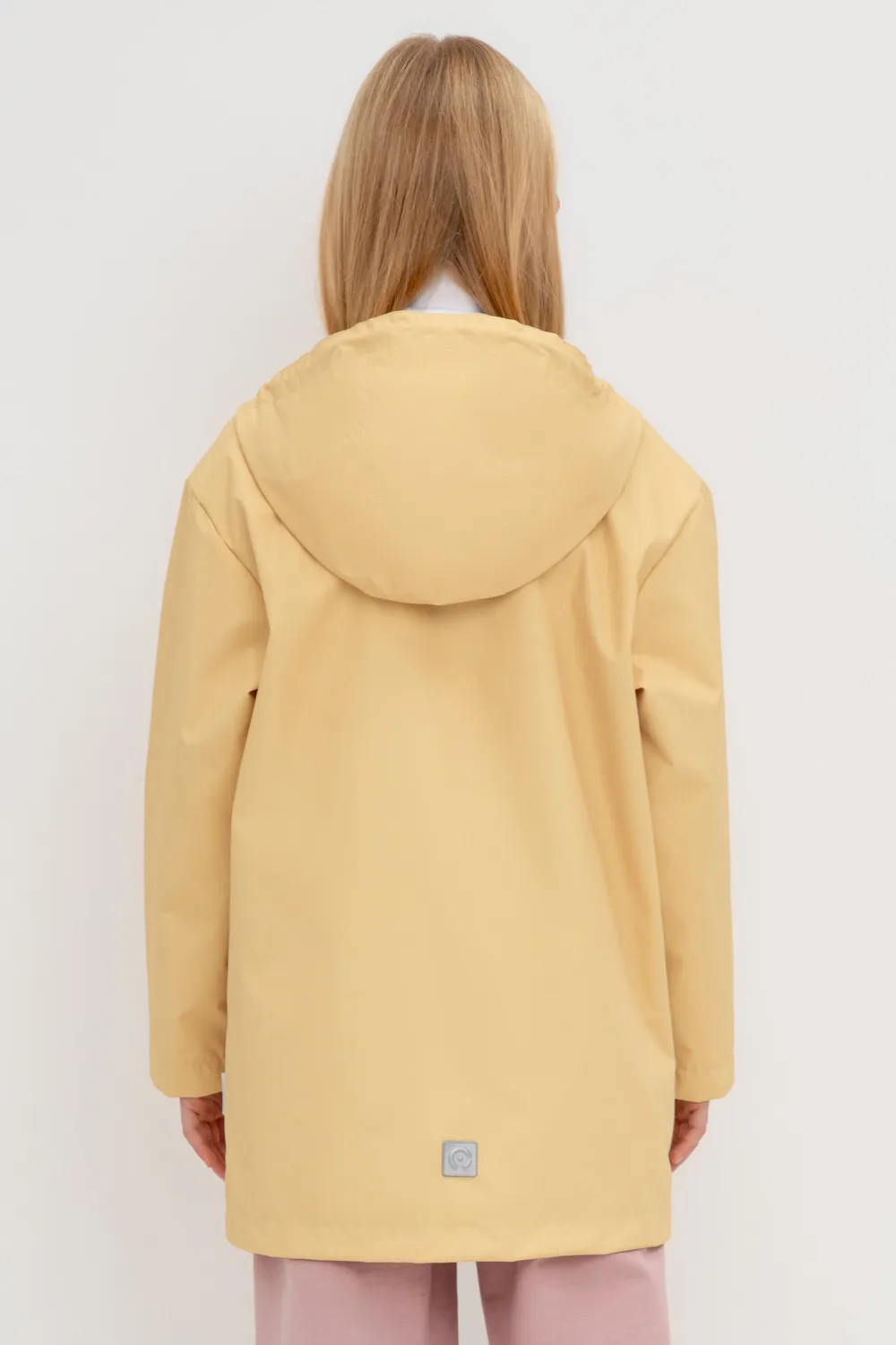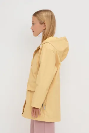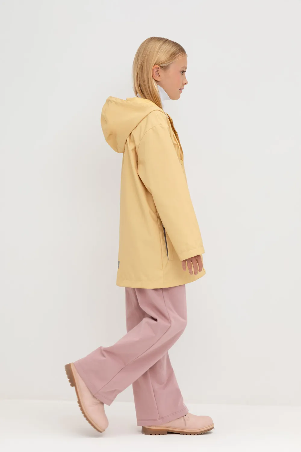 Ветровка для девочки из мембранной ткани с дополнительной тефлоновой обработкой.  Верхняя мембранная ткань 1000/1000 с тефлоновым покрытием отталкивает воду и грязь и обладает «дышащими» свойствами. Подкладка выполнена из 100% полиэстера. У изделия предусмотрена защита подбородка. Несъемный капюшон регулируется с помощью эластичного шнура со стопперами. Манжеты на резинке регулируются по ширине с помощью липучек.  Во всех изделиях верхнего ассортимента для безопасности ребенка предусмотрены светоотражающие элементы.
