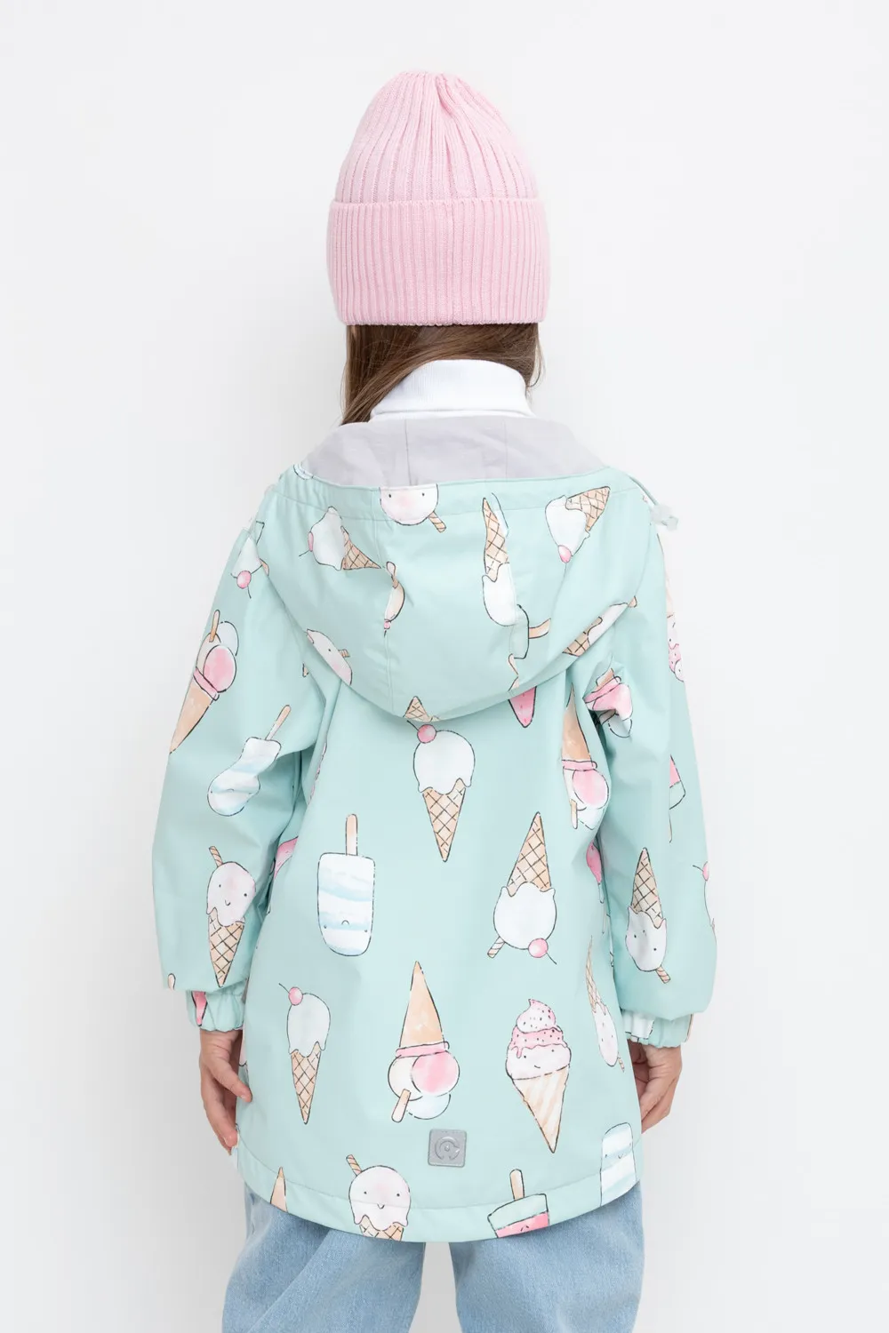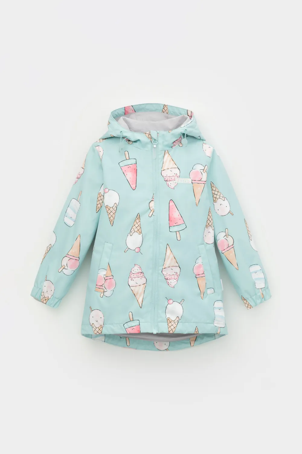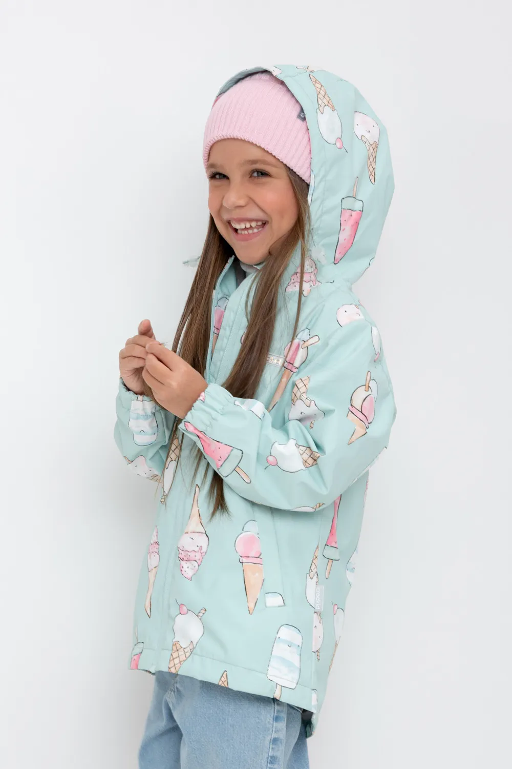 Ветровка для девочки из мембранной ткани с дополнительной тефлоновой обработкой.  Верхняя мембранная ткань 1000/1000 с тефлоновым покрытием отталкивает воду и грязь и обладает «дышащими» свойствами. Подкладка выполнена из 100% хлопка. У изделия предусмотрена защита подбородка. Несъемный капюшон регулируется с помощью эластичного шнура со стопперами. Низ рукавов имеет эластичную резинку для лучшего прилегания. Во всех изделиях верхнего ассортимента для безопасности ребенка предусмотрены светоотражающие элементы.