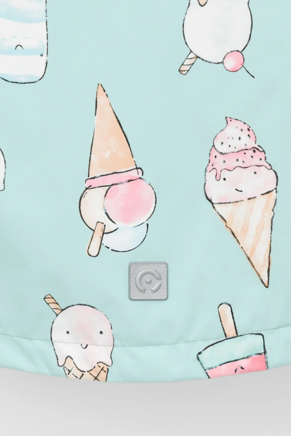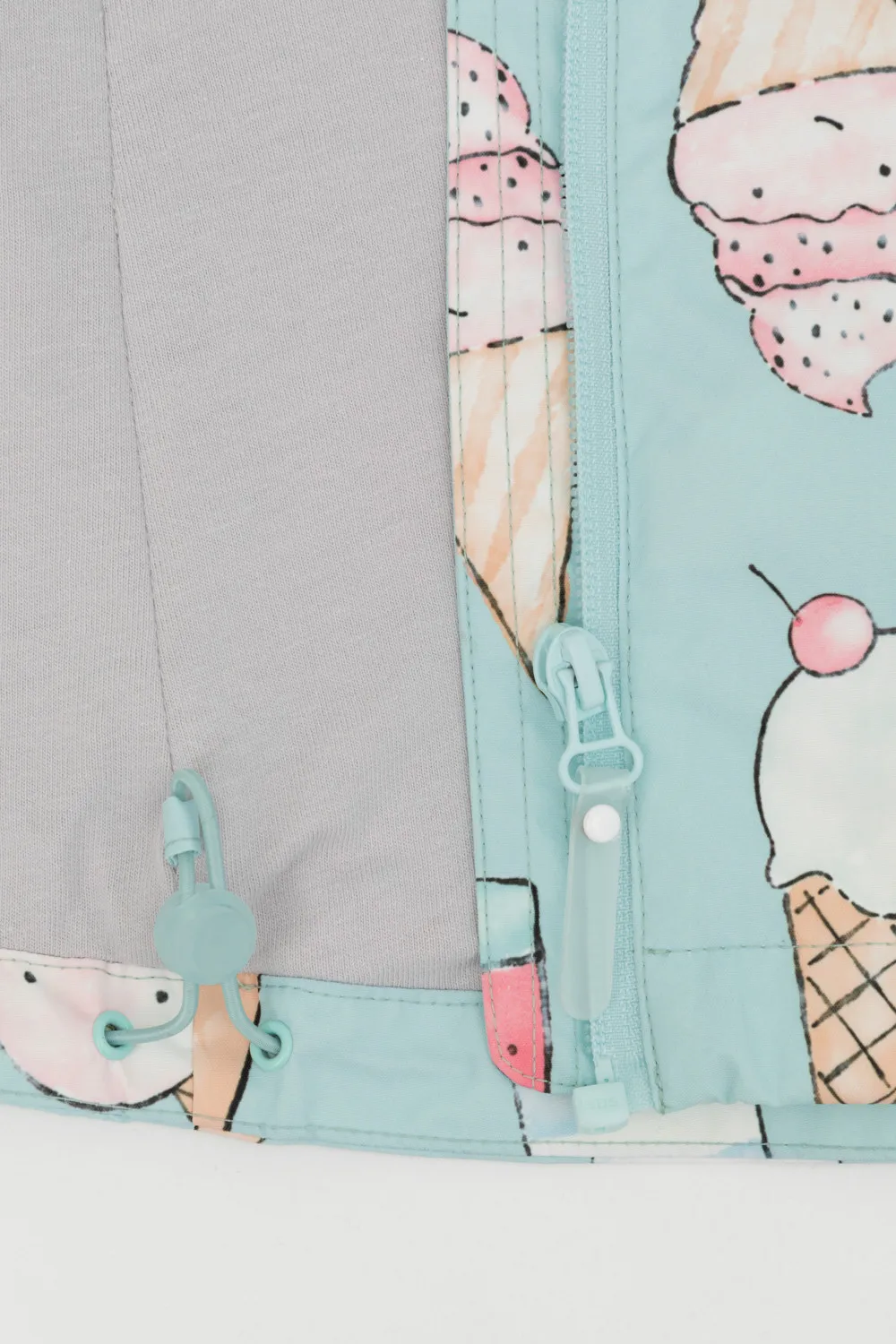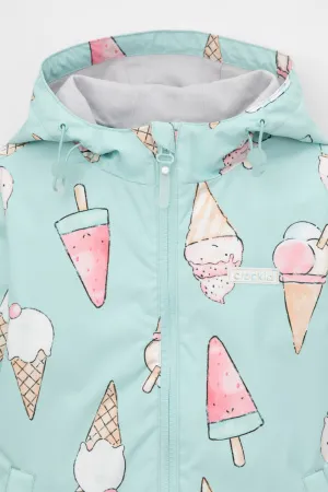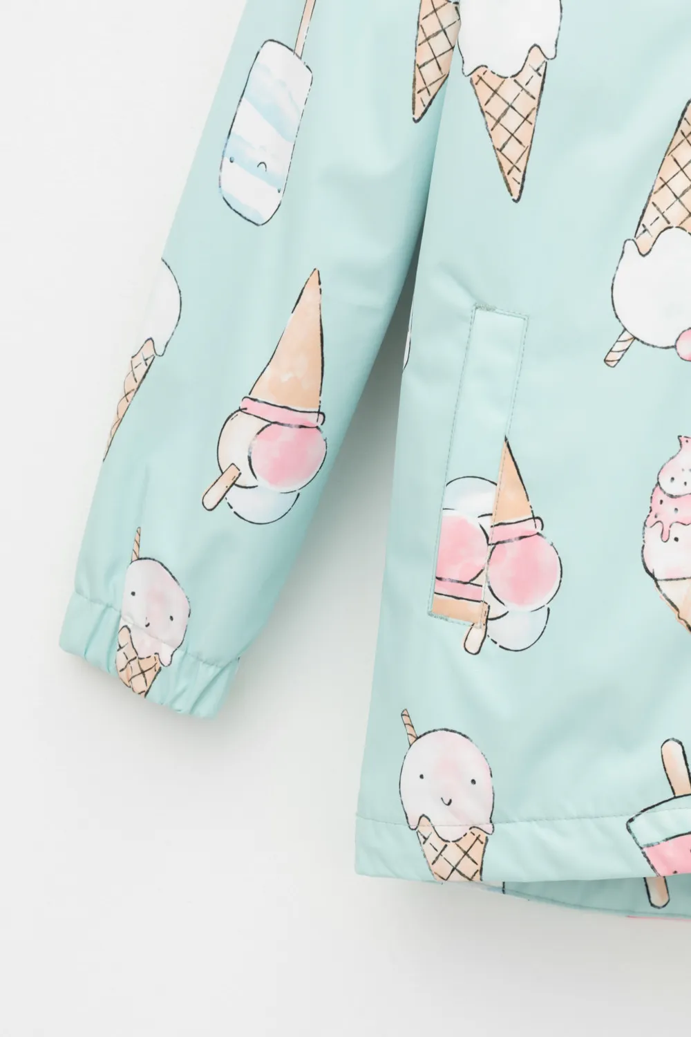 Ветровка для девочки из мембранной ткани с дополнительной тефлоновой обработкой.  Верхняя мембранная ткань 1000/1000 с тефлоновым покрытием отталкивает воду и грязь и обладает «дышащими» свойствами. Подкладка выполнена из 100% хлопка. У изделия предусмотрена защита подбородка. Несъемный капюшон регулируется с помощью эластичного шнура со стопперами. Низ рукавов имеет эластичную резинку для лучшего прилегания. Во всех изделиях верхнего ассортимента для безопасности ребенка предусмотрены светоотражающие элементы.